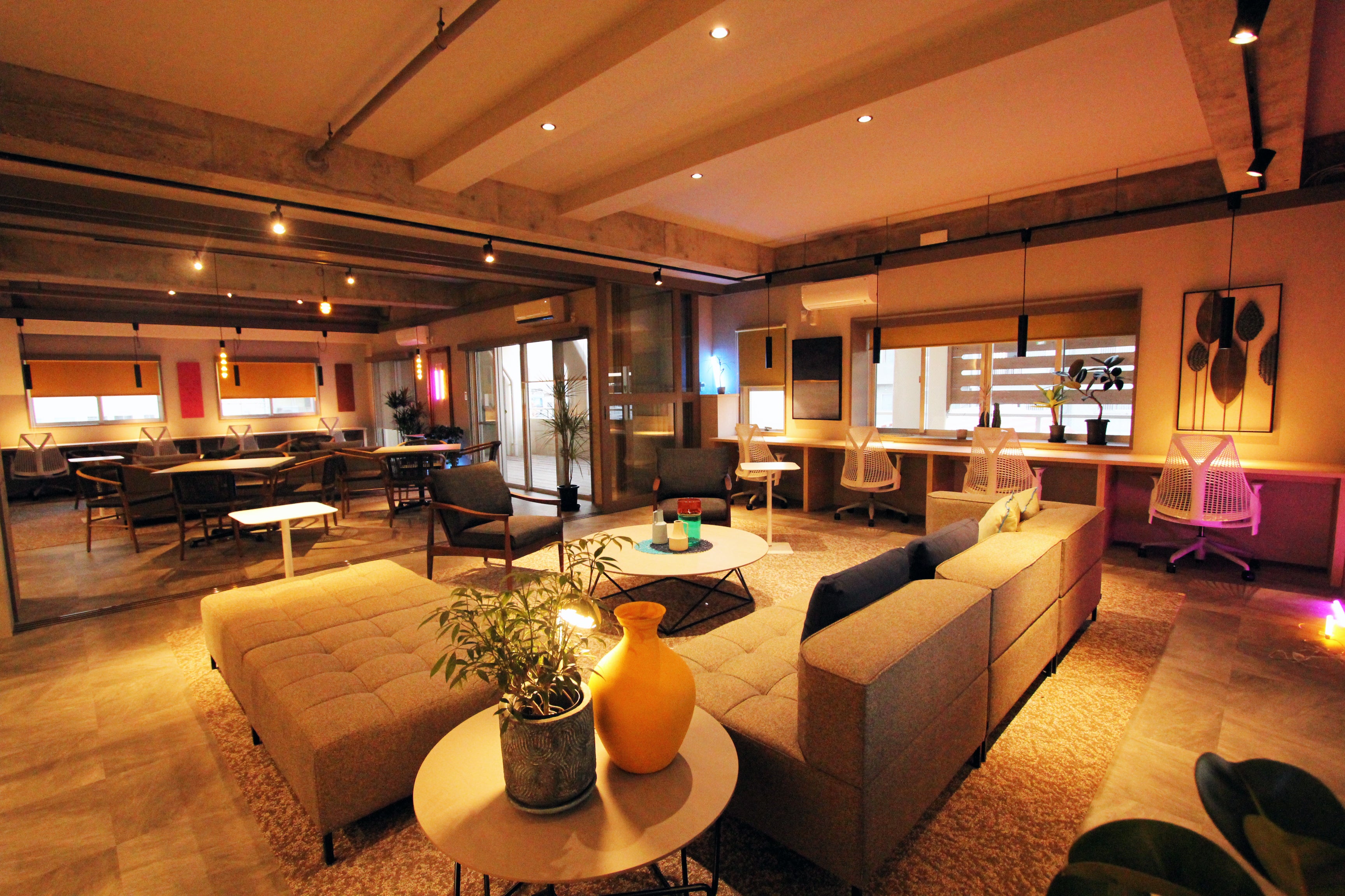 沖縄県各地でワーケーション・テレワーク施設「howlive(ハウリブ)」を展開する株式会社マッシグラ沖縄タイムス(本社:沖縄県那覇市、代表取締役:金子 智一)は、株式会社でいごホテル(本社:沖縄県沖縄市、代表取締役:大田 誉)が運営する沖縄市の老舗ホテルであるデイゴホテルの1フロアを改装したコワーキングスペース「DEIGO LOUNGE DOTS(デイゴラウンジドッツ)」の内装デザイン・設計を担当しました。