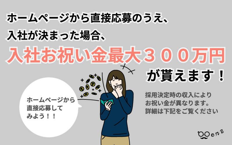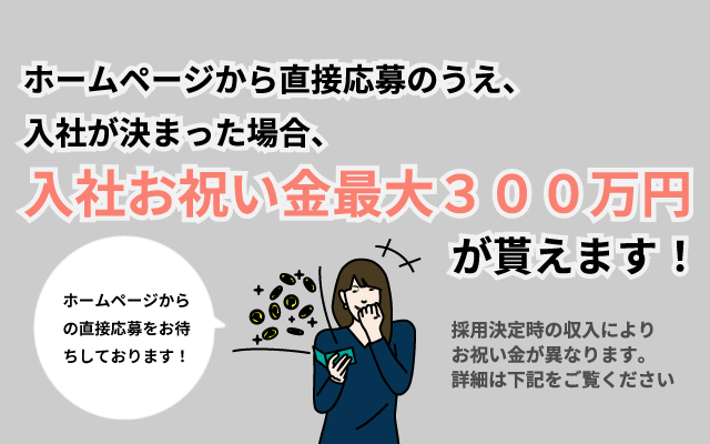 ホームページから直接応募して入社が決まると「最大300万円」が貰えるキャンペーンをスタート!