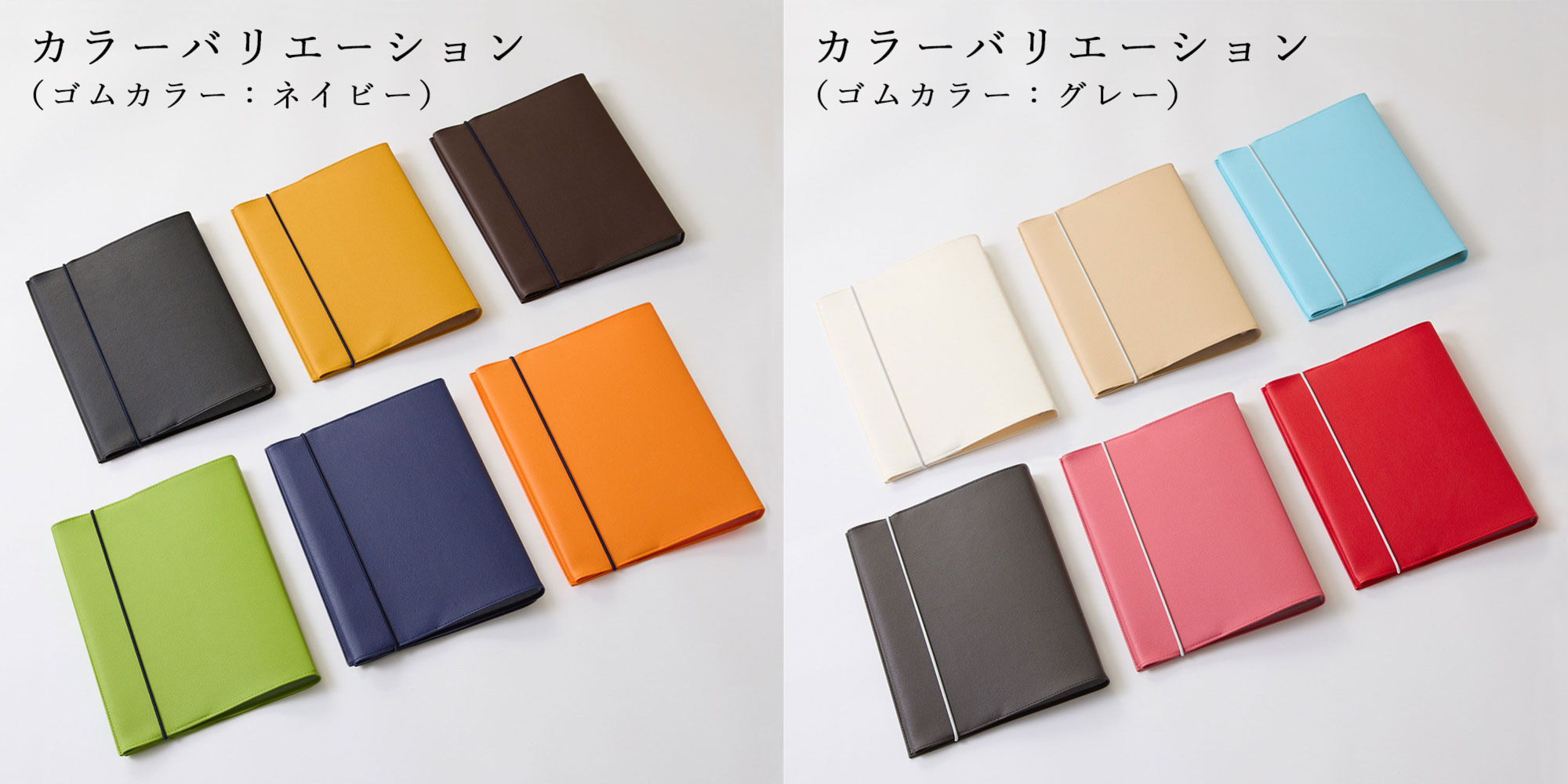 ゴムバンドはグレー、ネイビーの2色展開で、本体カラーに合う色の組み合わせでご用意しております。