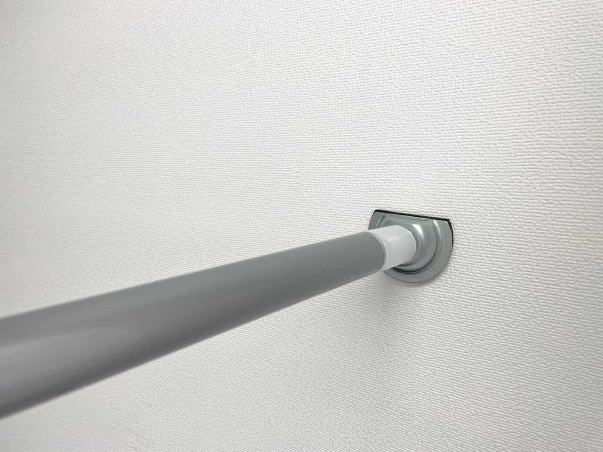 従来の突っ張り棒は、複数のパイプを伸縮させる機構のため長尺になると強度面に不安があることや突っ張る力が弱いなどの課題がありました。またカーテンレールとして使用する場合、継ぎ目やねじの凹凸があり、カーテンリングが引っかかるなどスムーズな開閉を阻害していました。