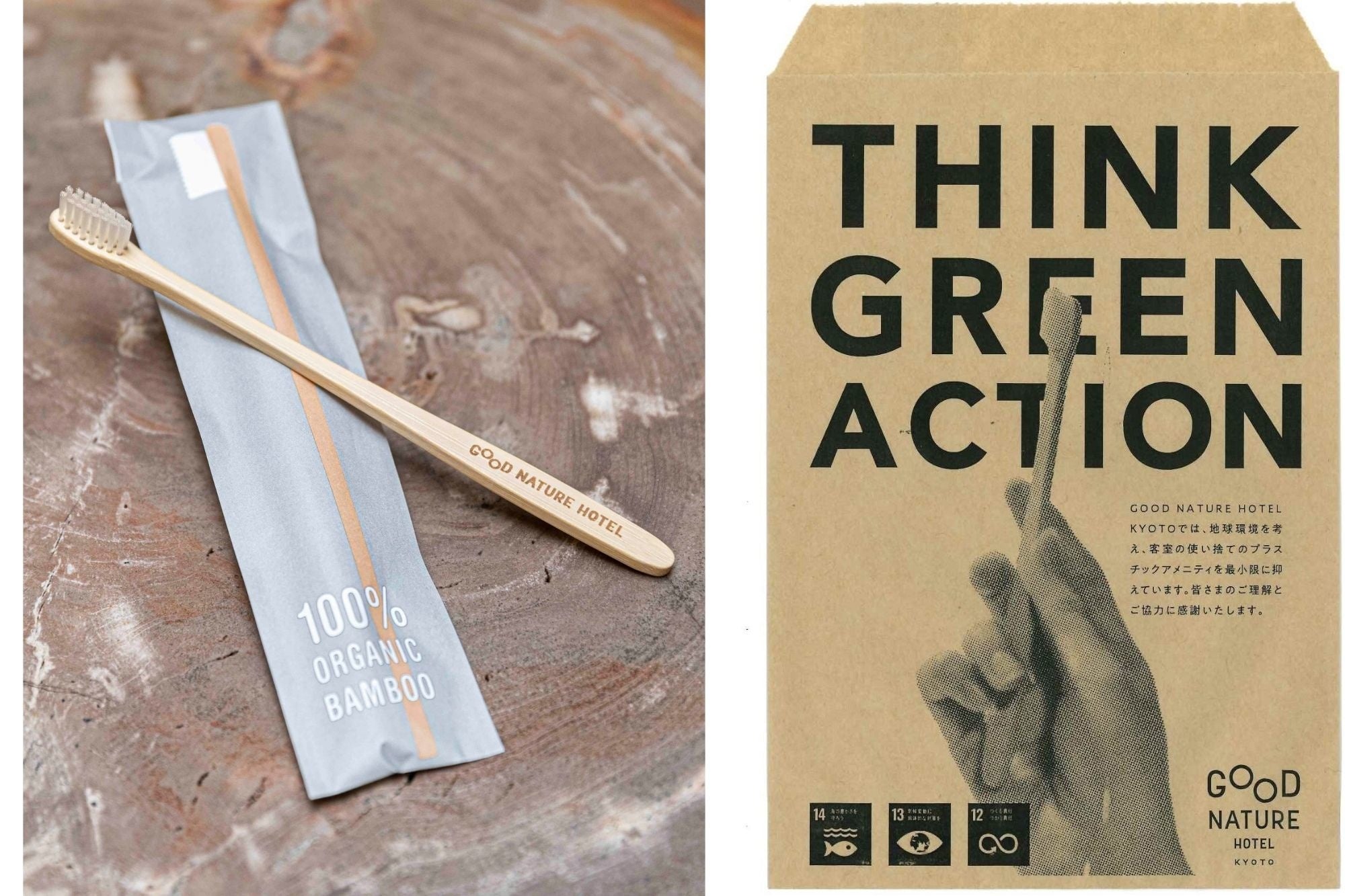 ~人にも、自然にも、いいものを~ 地球環境に配慮した脱プラスチック推進のためにもホテル客室にアメニティは極力設置せず、お忘れのゲストにお渡しする歯ブラシを竹製にしたのが導入のきっかけです。