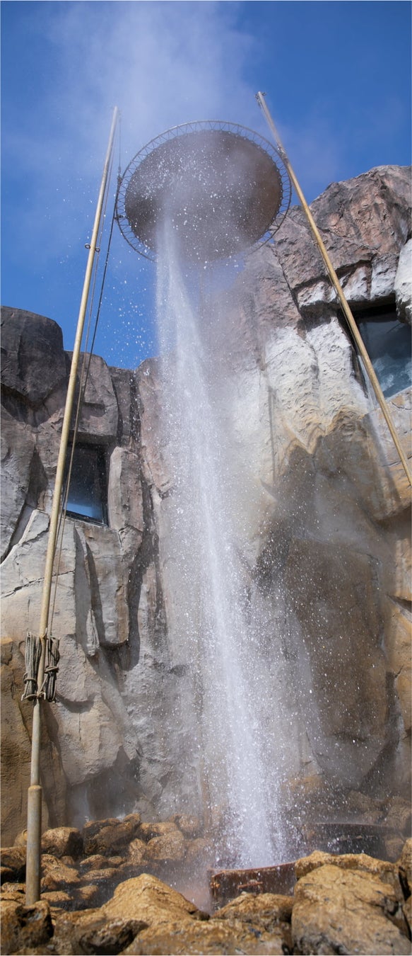 間歇泉の噴き上がりの直後、噴き上がった温泉が水路を伝って温度を冷ましながら足湯へと流れてきます。100周年にあわせ素足で歩けるウッドデッキを増設しており、足湯上がりに涼んだり、写真撮影が楽しめたり、ゆっくりと過ごすことのできる足湯にリニューアルしました。