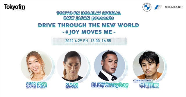 29日の公開生放送では、TOKYO FMでのオンエアに加え、バーチャル空間において、YouTube Liveにてライブ配信する※。番組パーソナリティは、浜崎美保氏(TOKYO FM「Skyrocket Company」パーソナリティ)が務め、ゲストにダンスクリエイターのTRF・SAM氏、ELLY/CrazyBoy氏、コメントゲストに中尾明慶氏を迎え、「JOYなエピソード」や、「EVが作る新時代のクルマのJOY」等をテーマにトークが展開される。
