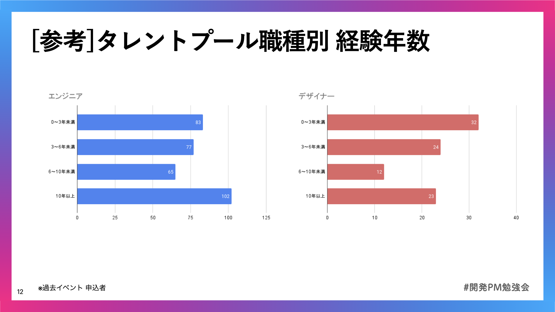 イベント一回あたりの参加者は200〜300名、毎月の新規グループ参加者は100名を超えることもあり、Google検索「PM 勉強会」では検索結果1位を獲得しています。(2023年1月現在)