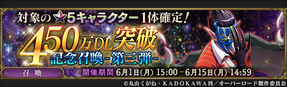 ★5キャラクターの排出率が 2➝3% にUPすることに加え『ナザリック祭』でのみ出現する限定キャラクターが登場します。