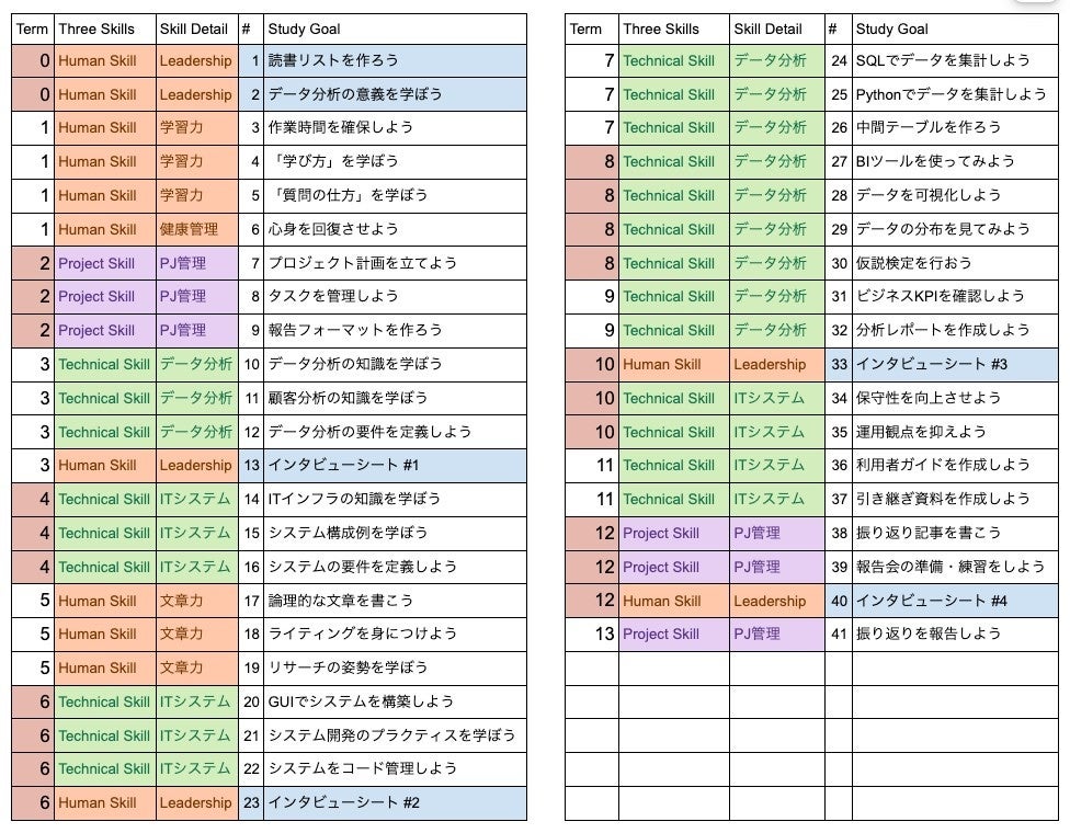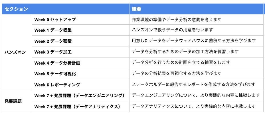 リーダーとして一人前の活躍ができるように、基礎知識のインプットと実践課題のアウトプットを大量にこなします。ビジネススクールの「データ分析」「データ基盤」バージョンだとお考えください。
