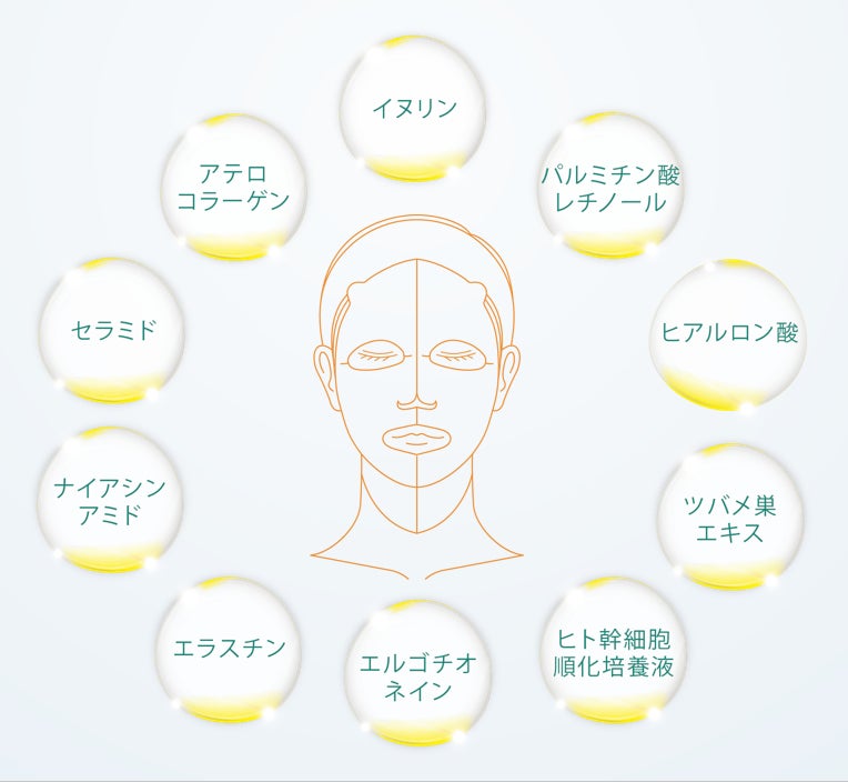 10種類の厳選された成分を贅沢に配合し、肌にしっかりと保湿とハリを与えます