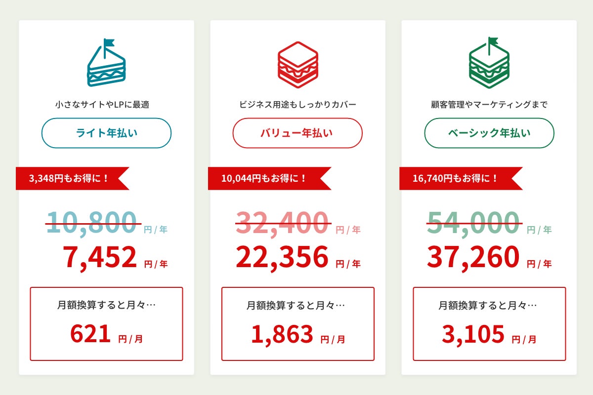 小さなサイトやLPに最適な『ライト年払い』なら3,348円お得