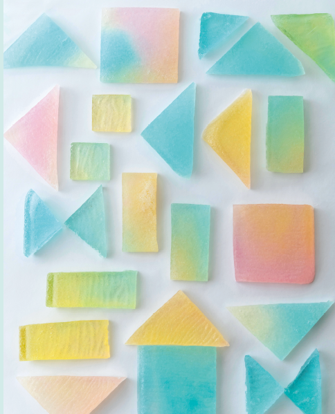 お菓子のタイトルも面白く、何本あるかなポッキー、ひき算団子、かけ算ちぎりパン、わり算したい生キャラメル、500mlパックのミルクゼリー、三角形のパイ、線対称と点対称のビスケット、全部同じ量でチョコレートカップケーキ、3:1のパンケーキなど。好評のサイエンススイーツも層ドリンク、光るドリンクなど。巻末には展開図で立体が学べるラッピングアイデア付き。