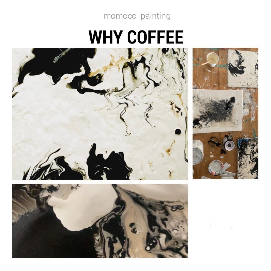 食べられる真っ白のオーガニック絵の具にWHY COFFEEを混ぜて暖かいコーヒーを混ぜたアート。