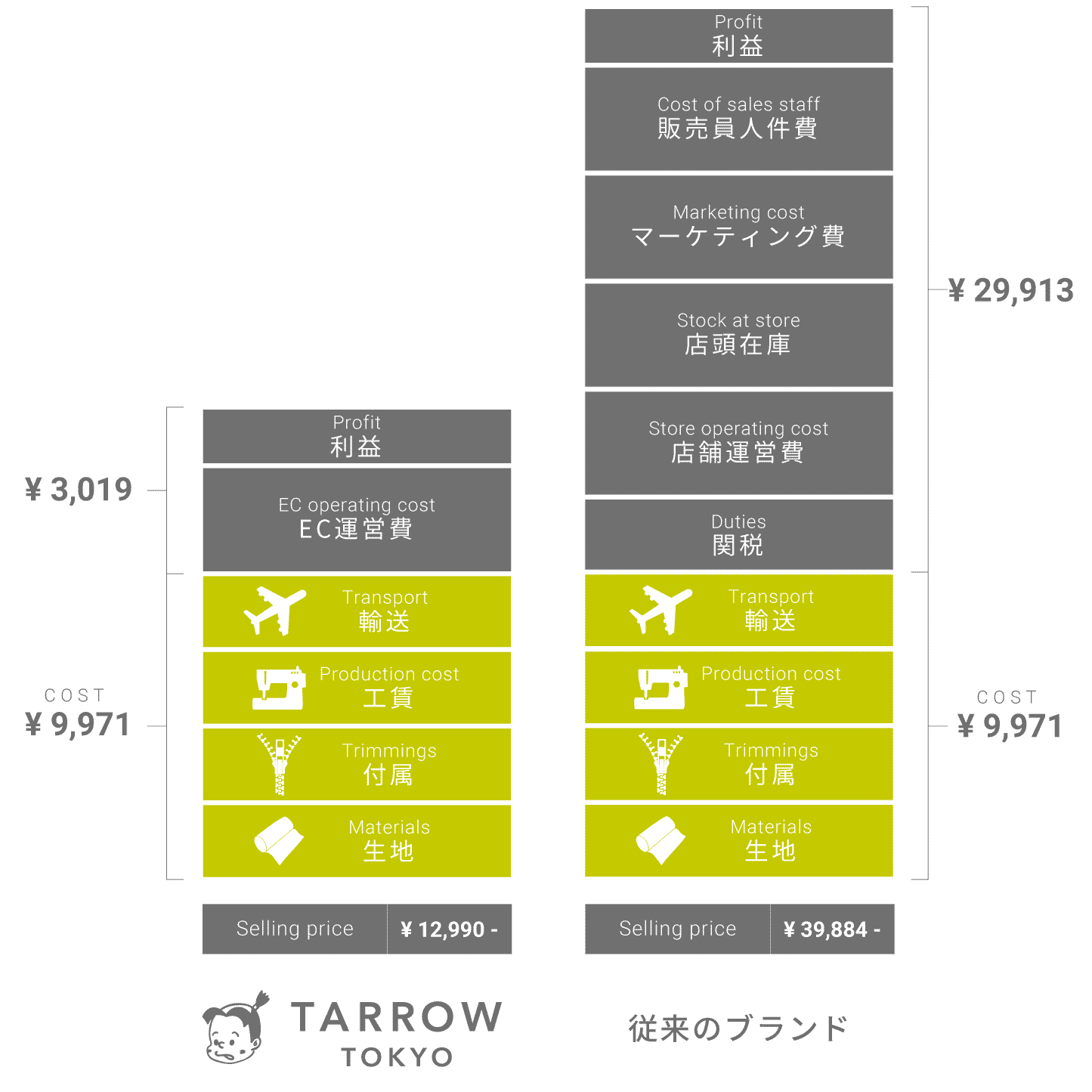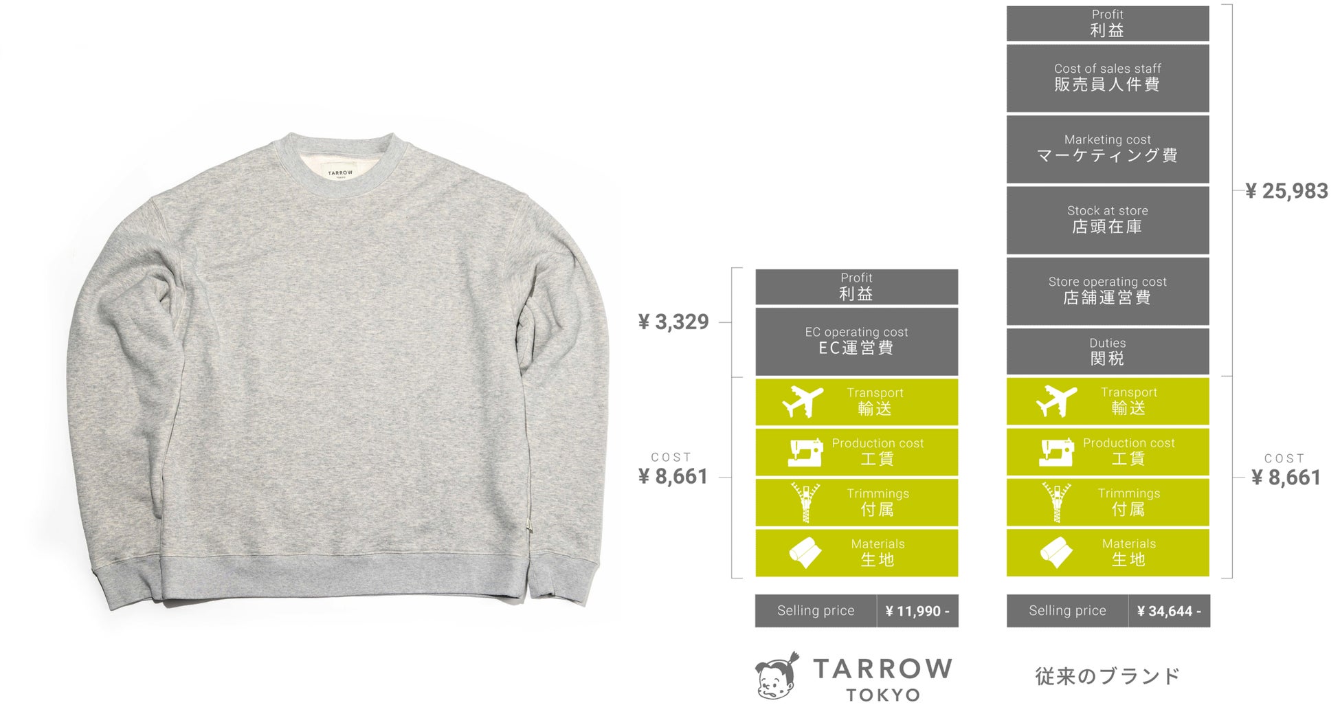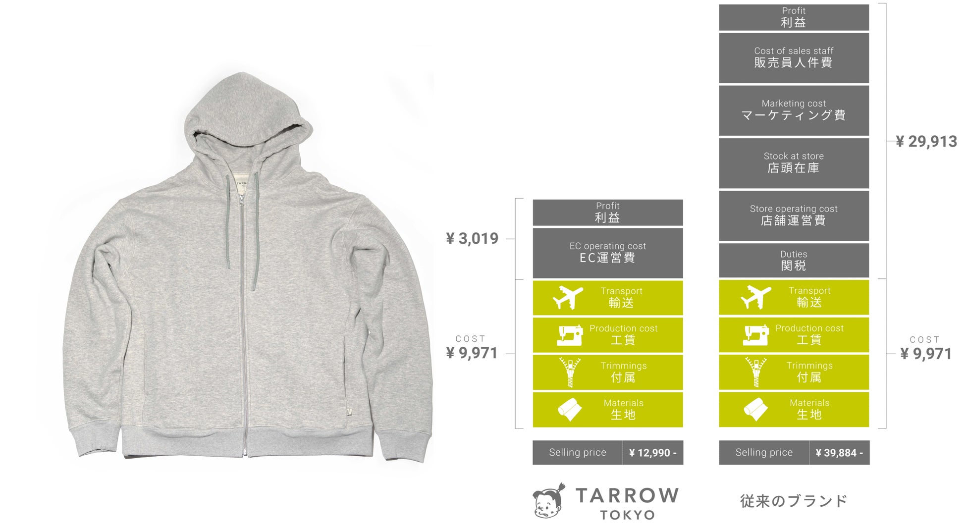 - 「売れる服」ではなく「買いたい服」の理由を共有【原価構造を開示】 服作りのプロが手掛けるブランドだからこそ、なぜ自分たちが買いたい服なのかをわかりやすく消費者と共有するため、全ての商品の原価構造を開示します。