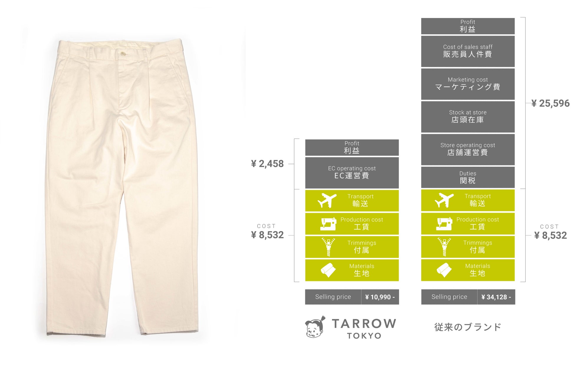 品質よりも価格を重視した「売るための服作り」に主眼が置かれている状況を打破し、一人ひとりが必要な服を長く大切に着る世界を作りたい、それが環境負荷が高いとされるファッション業界の課題解決につながる。そんな想いから誕生したブランドが『TARROW TOKYO』です。