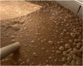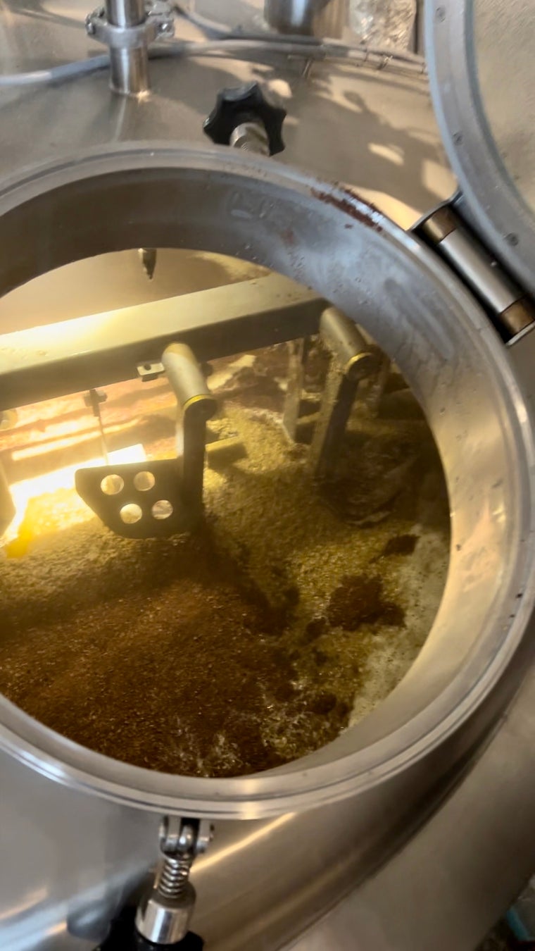絞りかすの中にカカオ皮が混ざっている様子この後、酵母を投入し、あとは発酵・熟成を待つのみです。どんなビールになるかは、まだ想像しかありません。