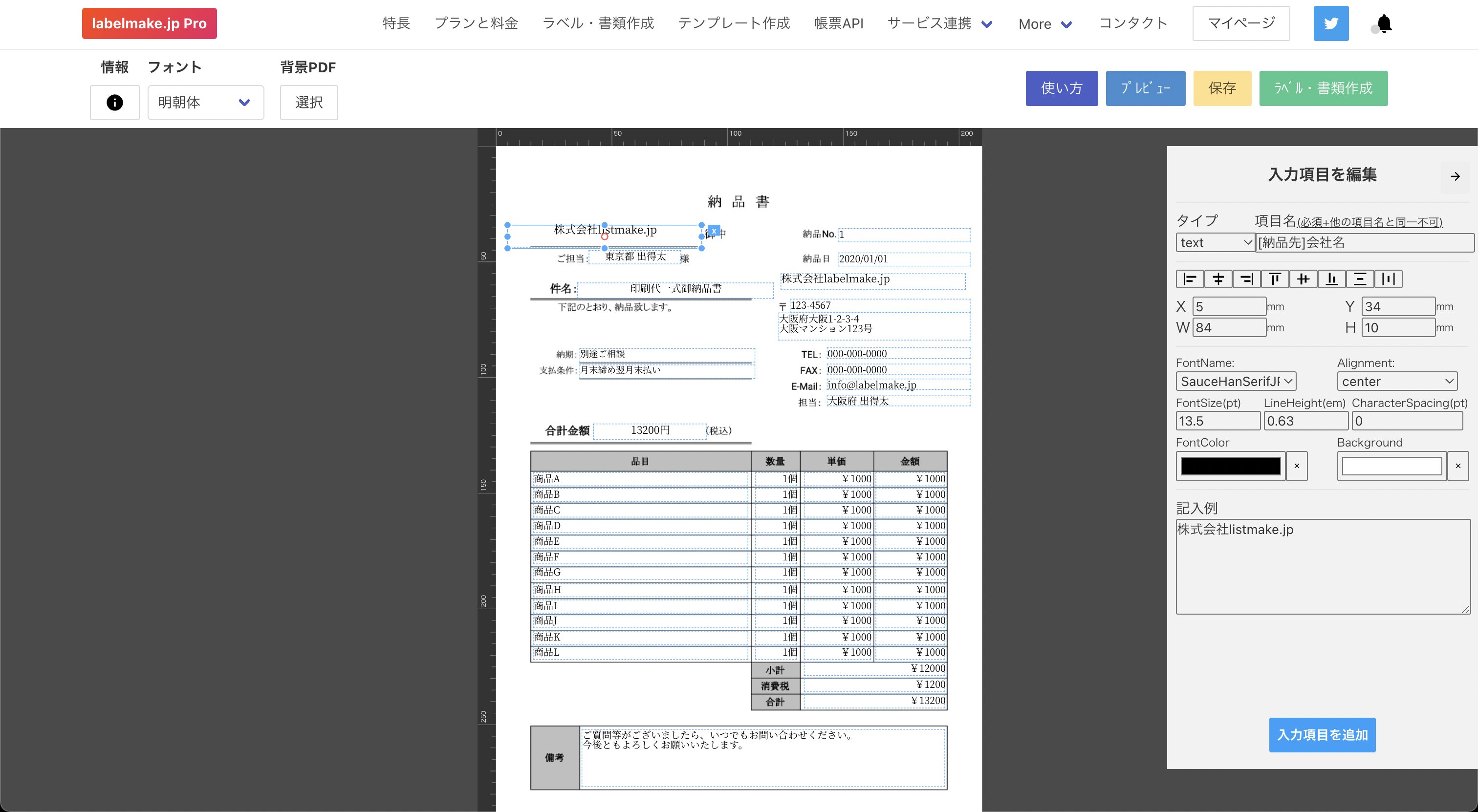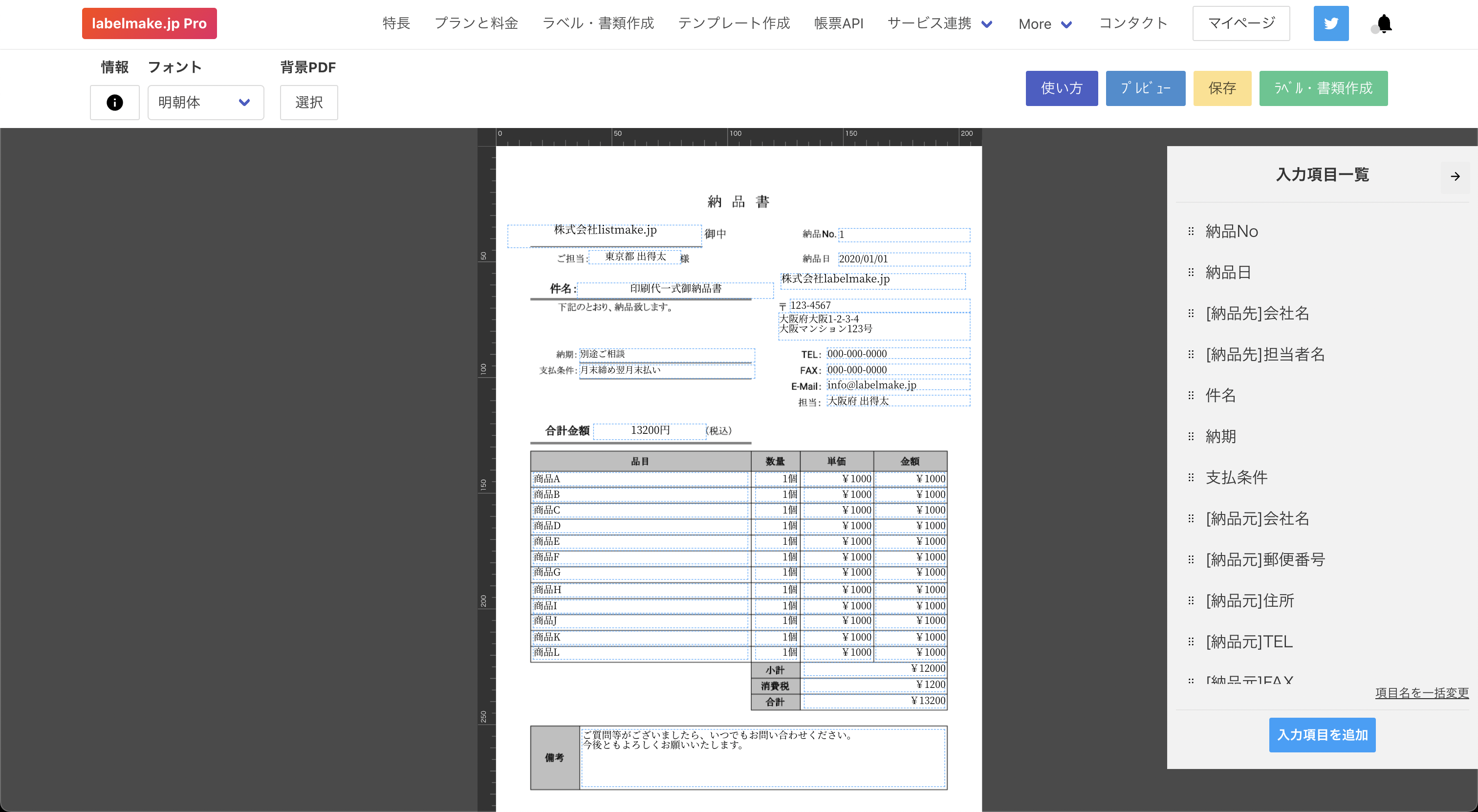 labelmake.jpはバリアブル印刷という、データから印刷物を作成する技術を応用し、簡単に誰でも使えるPDF作成サービスを提供しています。