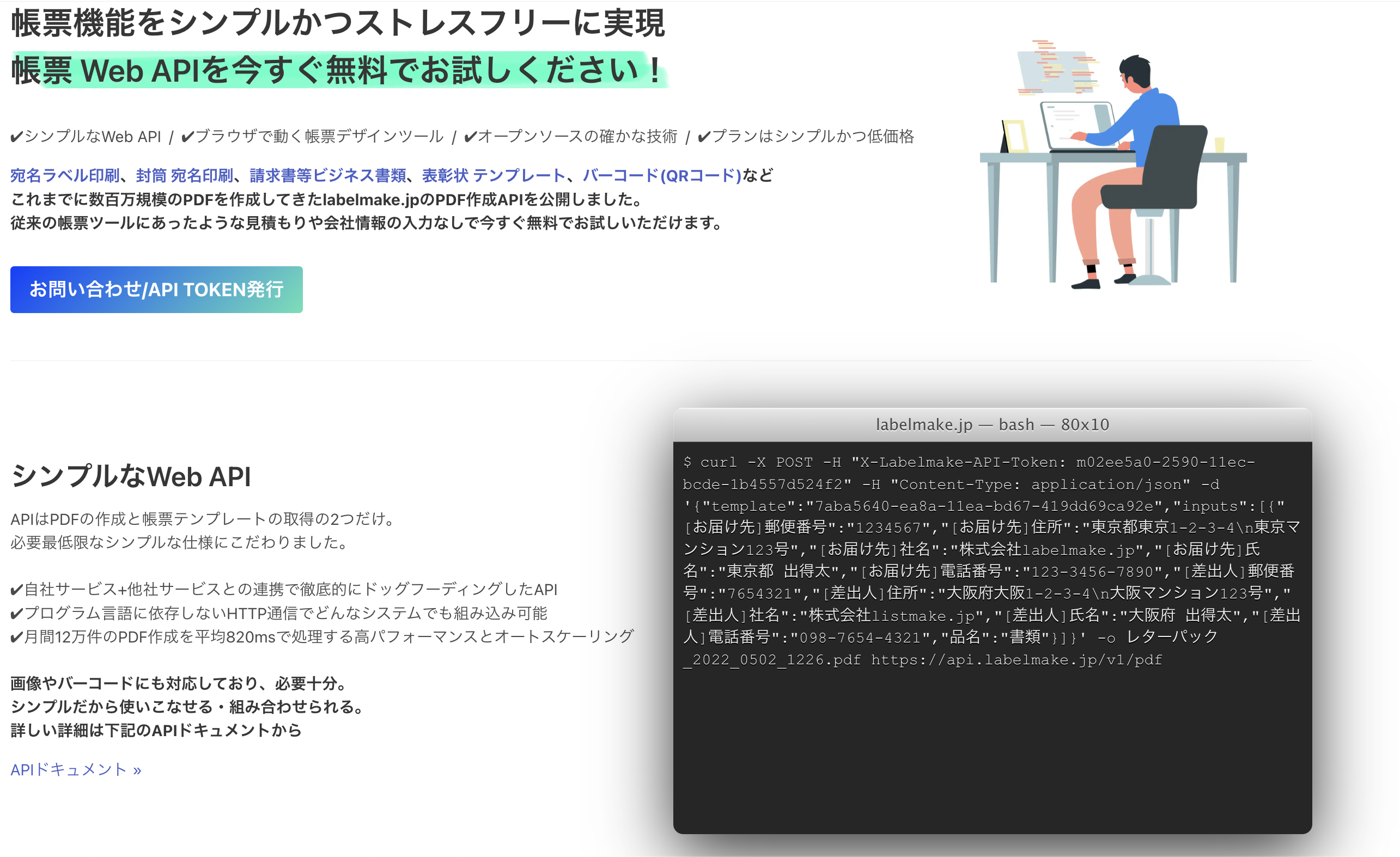 labelmake.jpが提供するAPIは今までのものと全く違う、シンプルでオープンな帳票サービスです。