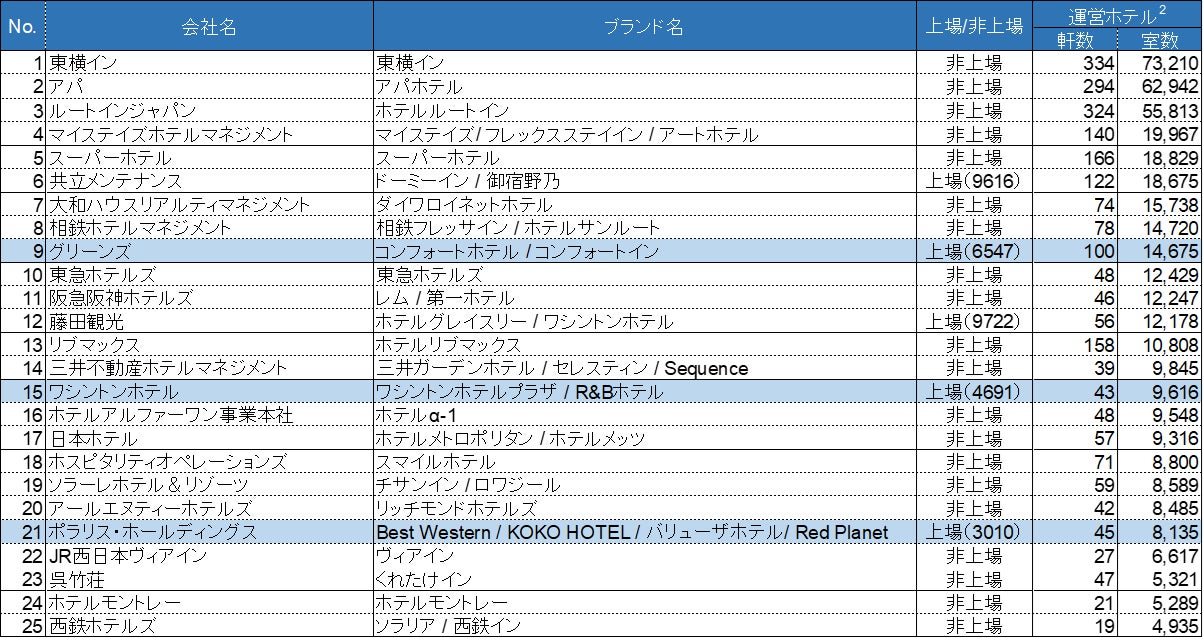 日本のホテル運営会社(運営客室数ベース)1
