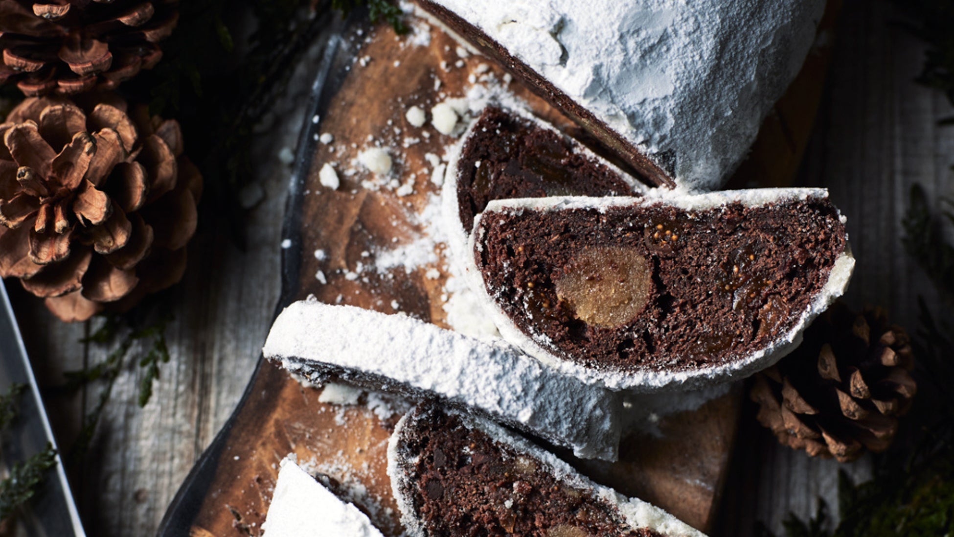 無花果を思わせるフルーティな味わいのチョコレートを練りこんだほろ苦いショコラ生地に、こだわりのスパイスやバニラと、ラム酒に漬け込んだドライフルーツやナッツをふんだんに混ぜ込みました。
