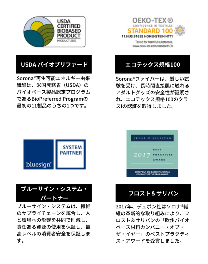 SORONA®︎の各種認証