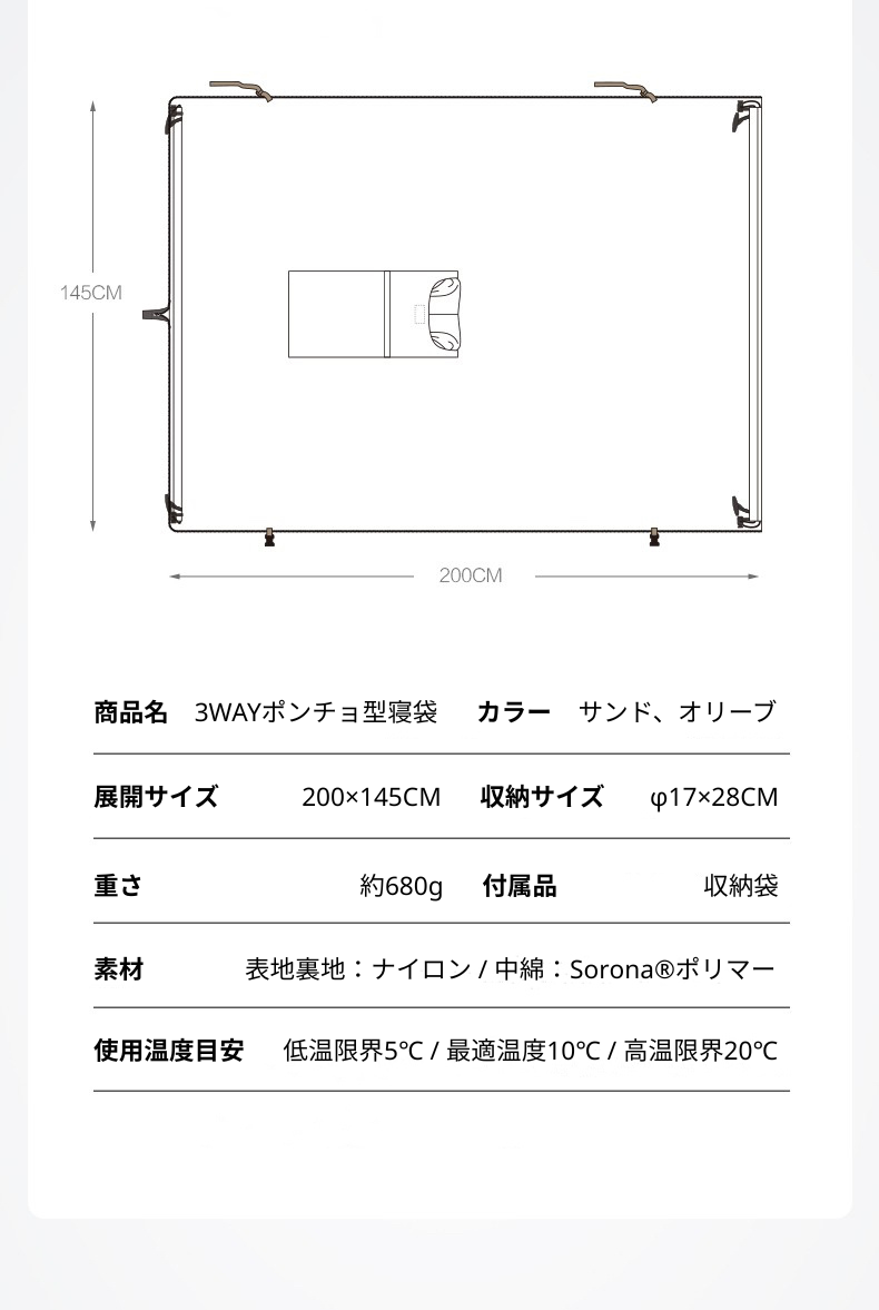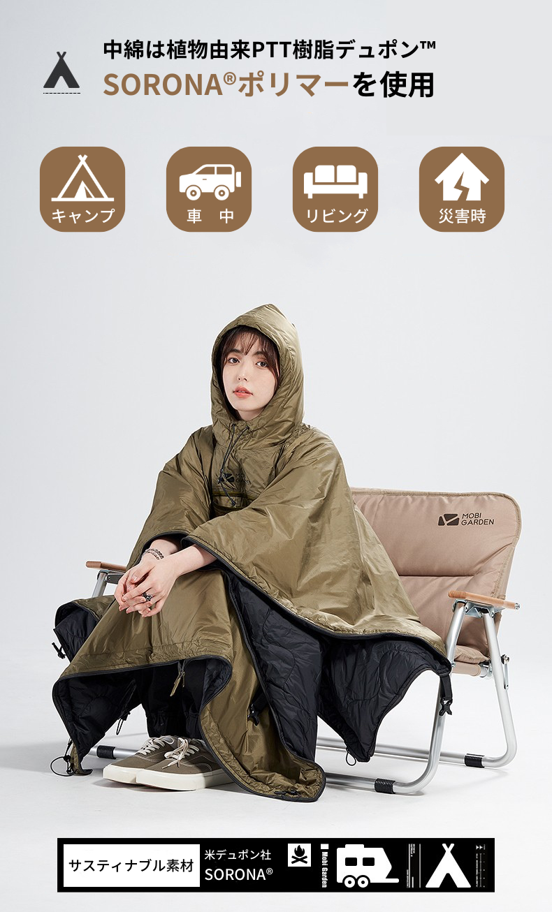 サスティナブル素材Soronaで軽〜いのに、あったか〜い!ポケッタブル3WAYポンチョ型寝袋