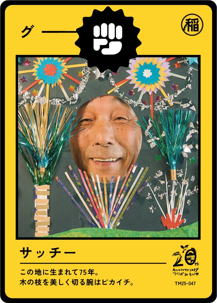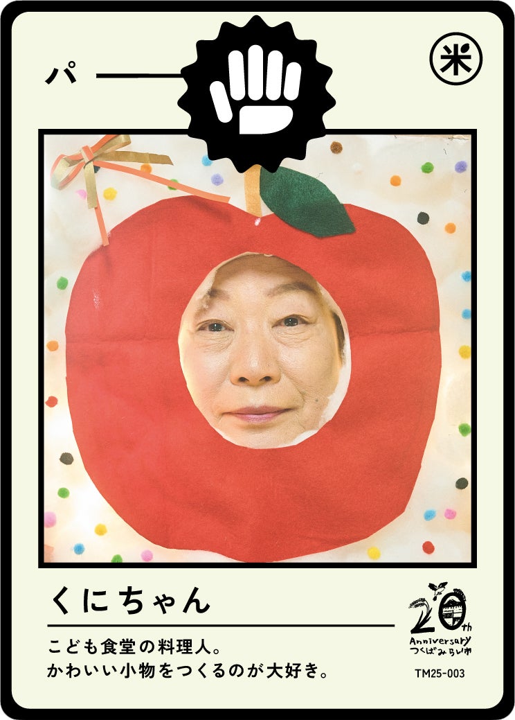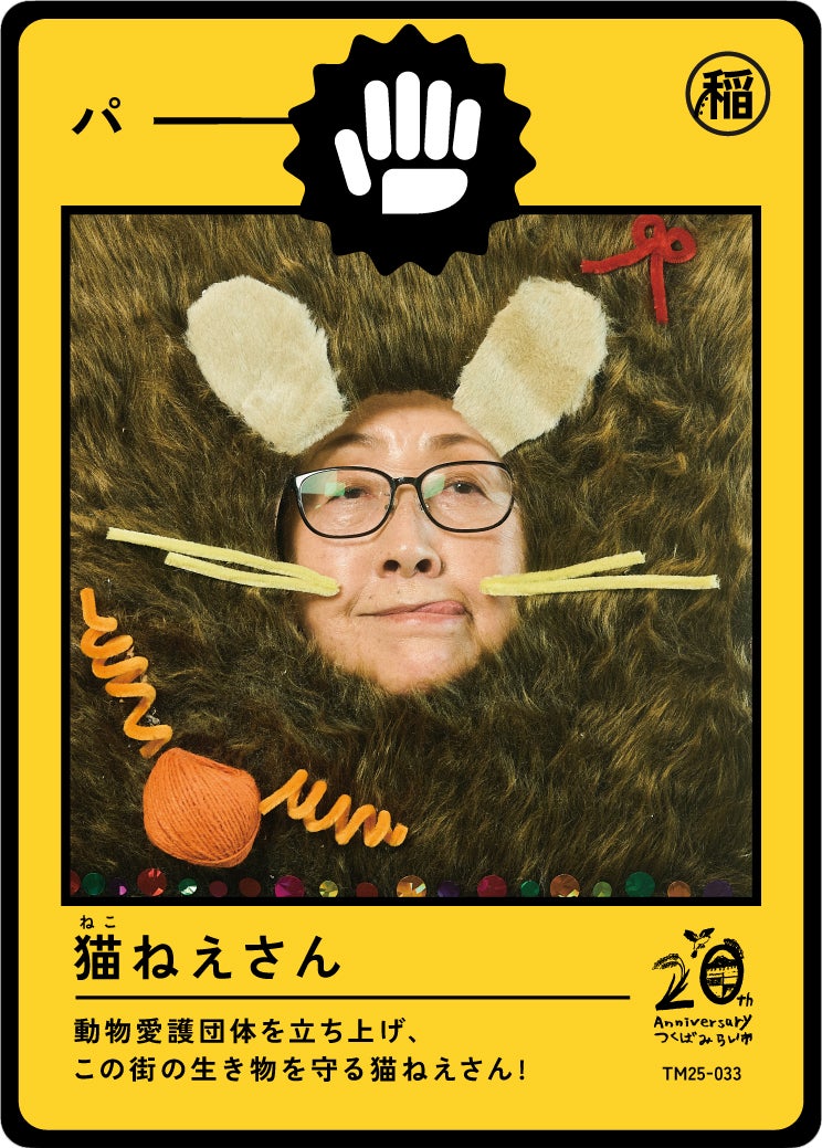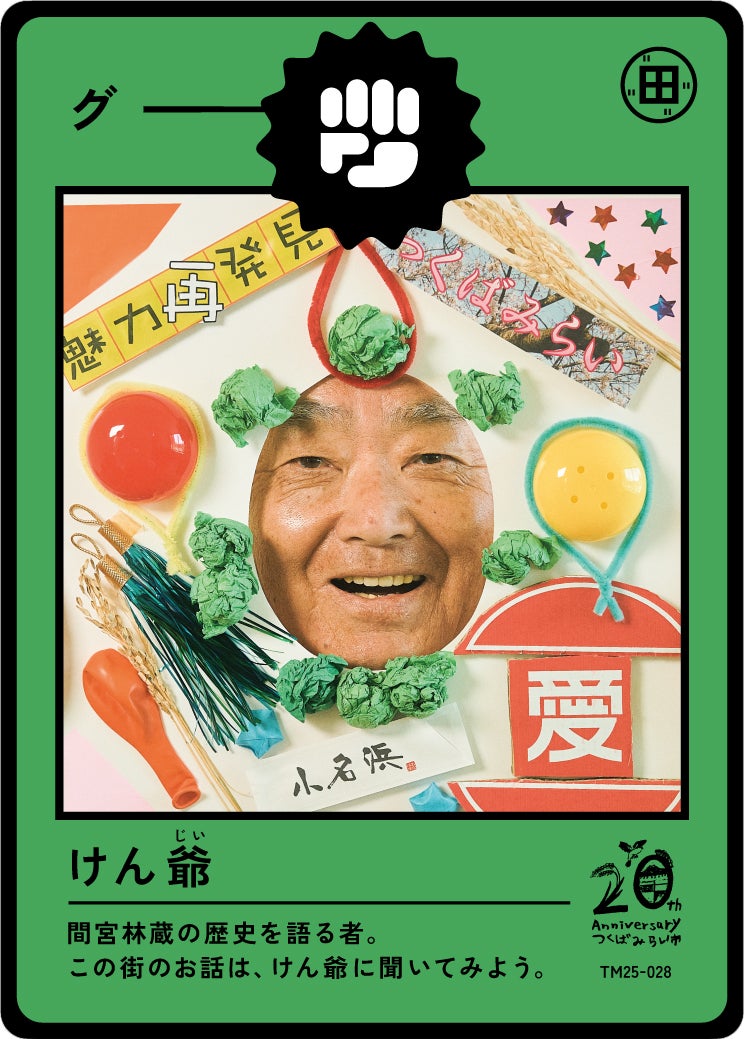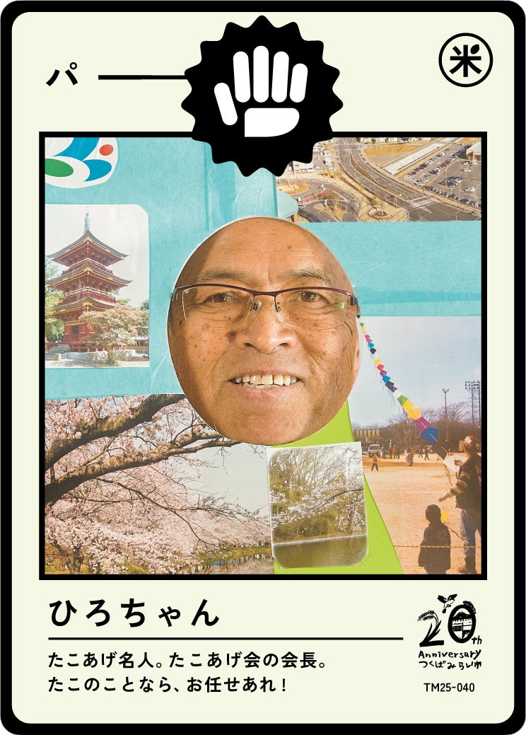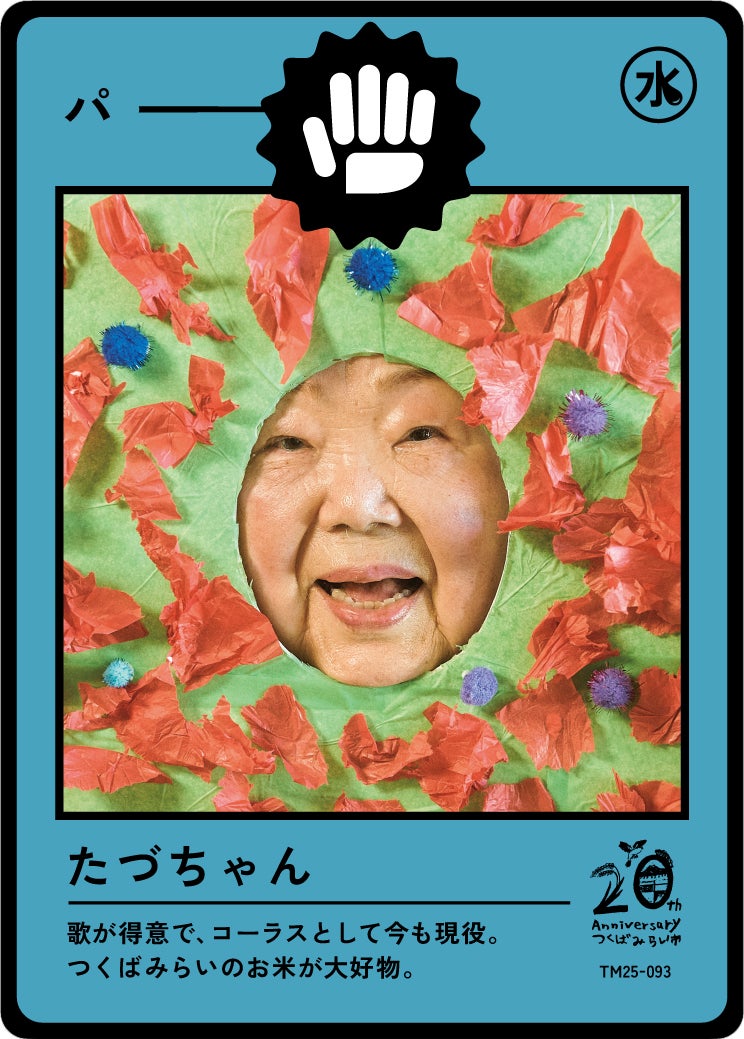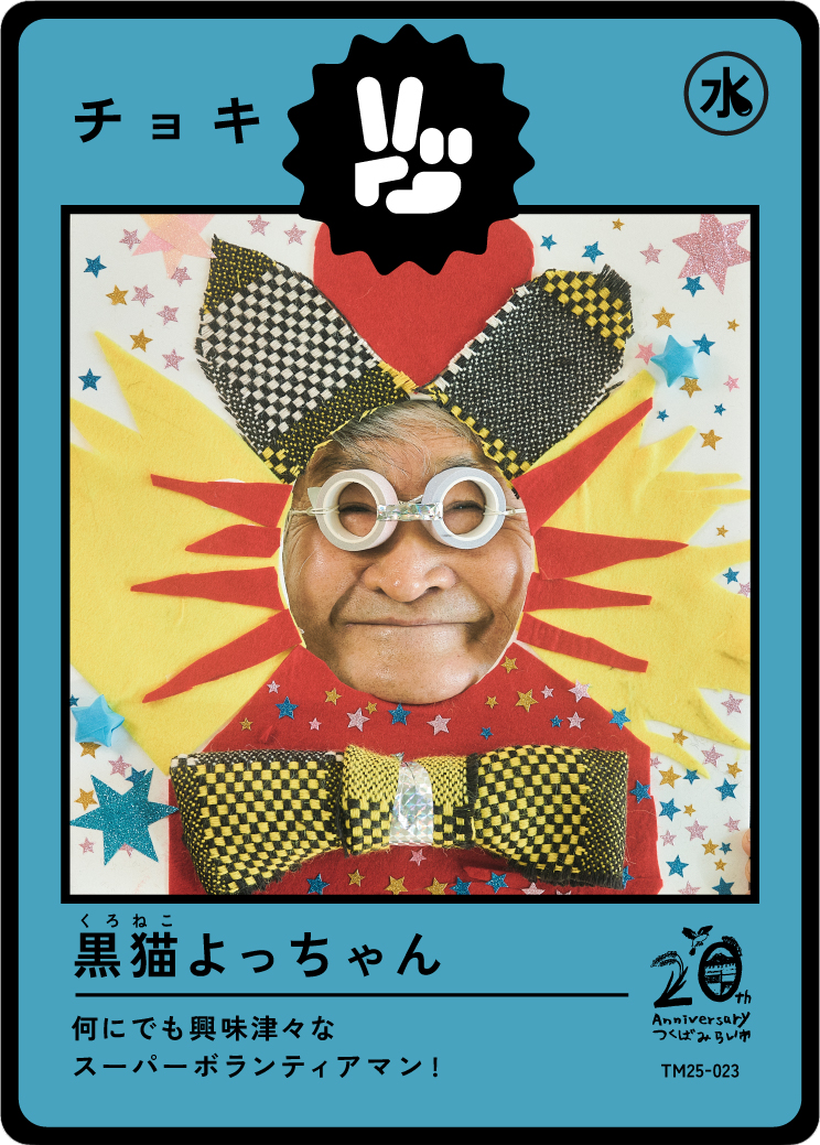 今年制作された第一弾のテーマは「伝説を知りし勇者たち」。この街に住み、様々な経験をされてきた60歳以上の100人のみなさんに、「私らしい、つくばみらい」をテーマに顔はめパネルを制作いただき写真を撮影。その写真がトレーディングカードとなり、子どもたちの手に届きます。