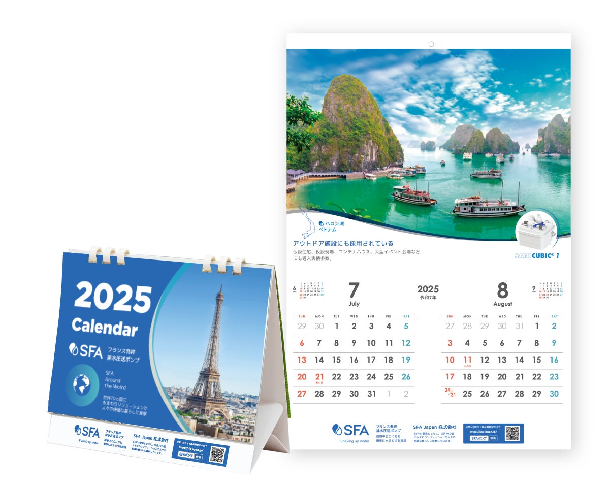 フランス発祥の排水圧送ポンプ『SFAポンプ』は、2025年のSFAオリジナルカレンダー(卓上タイプと壁掛けタイプの2種類)の無料配布の受付を開始しました。各タイプとも数量に限りがあるため、先着順で配布し、なくなり次第終了いたします。