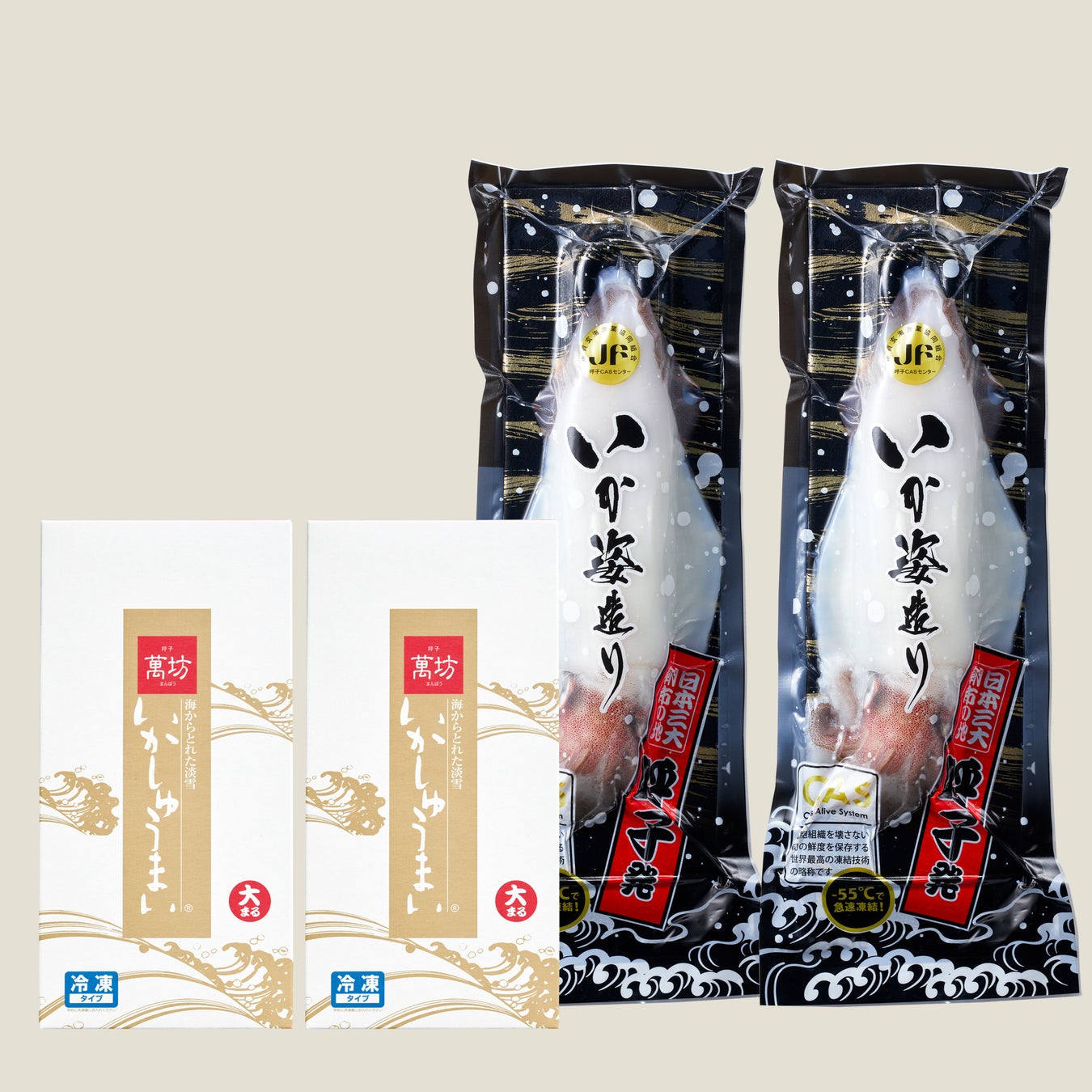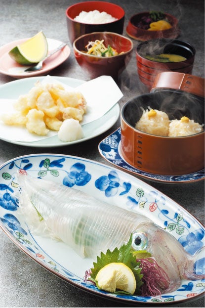 佐賀県のいかしゅうまい発祥の店『呼子萬坊』から、冷凍剣先いかの姿造りといかしゅうまいのスペシャルセットが登場
