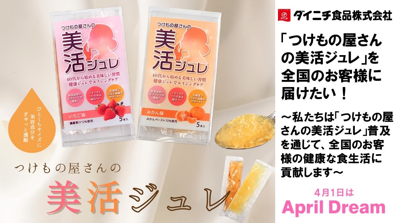 今年度はより多くのお客様に「つけもの屋さんの美活ジュレ」を届けることで、全国のお客様の健康な食生活に、漬物・発酵食品メーカーとして更なる貢献をしていくことを目指します。