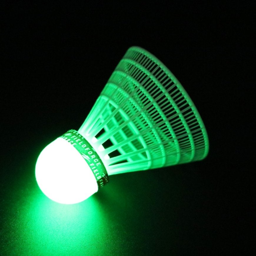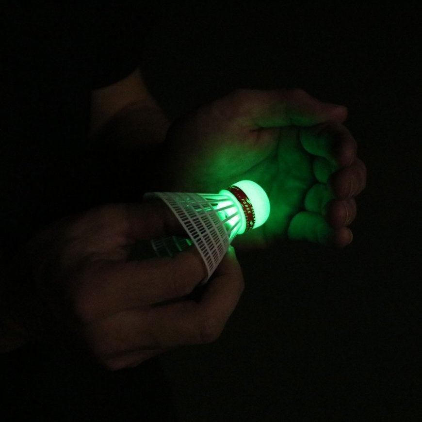 シャトルの先端がLEDライトにより緑色にライトアップされます。その明るさは真っ暗闇でもバッティング練習ができるほど。周りは暗い中、光るシャトルだけを目で追う練習は集中力を養えるとも考えられます。