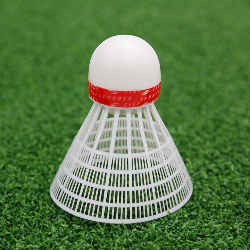 累計200万個以上を販売したフィールドフォースならではの「バッティング専用」シャトルの秘密はシャトルの飛び方にあります。受ける空気抵抗が少ない形状のため、投げた際に実際の投手が投げる直線的な軌道に近くなり、より実戦感覚でのバッティング練習が可能となります。また、打った際には反発性の低いEVA素材の先端がバットに当たるため、飛びにくく、散らばりにくい仕様になっております。こうすることでシャトル回収の快適さも求めました。