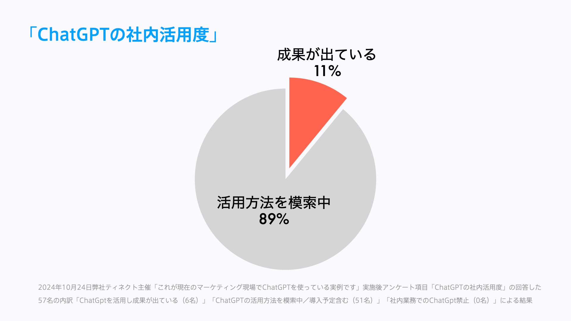 この結果は、多くの企業がChatGPTの真の力を引き出し、業務へ効果的に組み込む方法をまだ見出せていないことを示しています。
