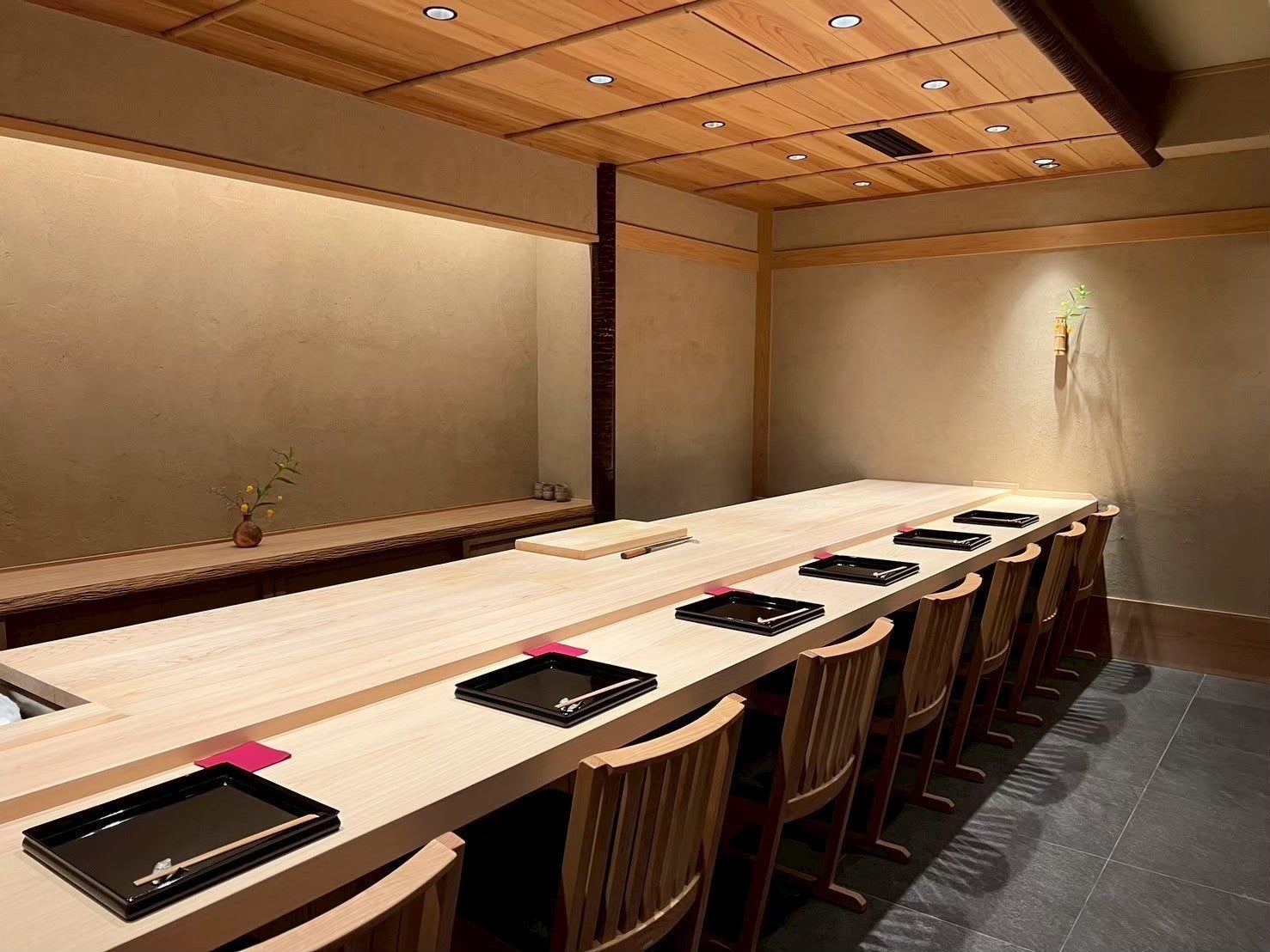 阪急烏丸駅・地下鉄四条駅近くの賑やかな居酒屋「鯛之鯛」の店内を抜け、奥の扉を開くと現れる、檜の一枚板カウンターが美しい瀟洒な空間。わずか7席限定だからこそ実現できる、洗練された「隠れ家」のような雰囲気が魅力です。