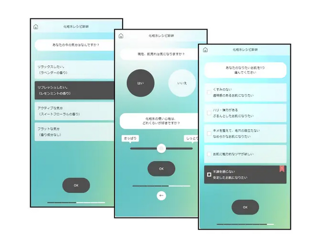 この商品は、ベース化粧水にWEB診断から導き出されたカスタマイズ成分を、レシピを元に自分で配合して混ぜてつくる新感覚の化粧水です。さらに、カラー診断結果から、化粧水ボトルに貼るオリジナルのラベルが生成され、メッセージを入れることができる‟世界にひとつだけ”の化粧水が完成します。クラウドファンディングの仕組みを活用した、アタラシイものや体験の応援購入サービス「Makuake」にて、公開中です。