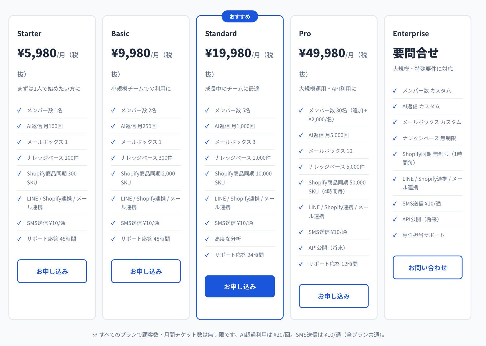 対応チャネル:メール、LINE公式アカウント、Shopify、SMS(送信)