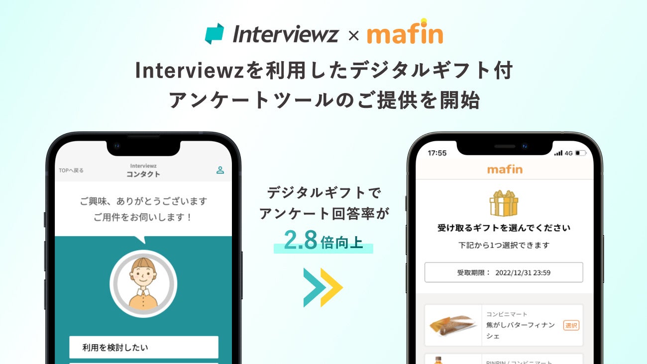 ヒアリングDXを実現するノーコードSaaSサービスInterviewz(インタビューズ)、デジタルギフトサービス「mafin」と業務提携契約を締結
