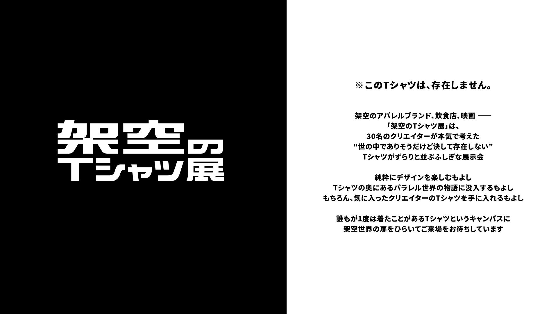 制約なく空想を形にするレーベル“架空レーベル”を創設。業界問わず総勢30名の話題のクリエイターが集結。“世の中でありそうだけど決して存在しない“架空のTシャツを制作「架空のTシャツ展」期間限定オープン