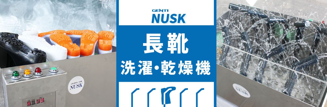 上記のお悩みを解決するためにサンリョウ株式会社が開発した長靴洗濯・乾燥機「GENTI NUSK」をご紹介します!