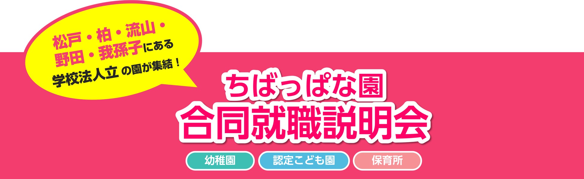 東葛エリアにある「ちばっぱな園」が集結する合同就職説明会を開催します。これから就職活動を開始する、幼稚園教諭・保育士を目指す学生の皆さんにピッタリの機会です。