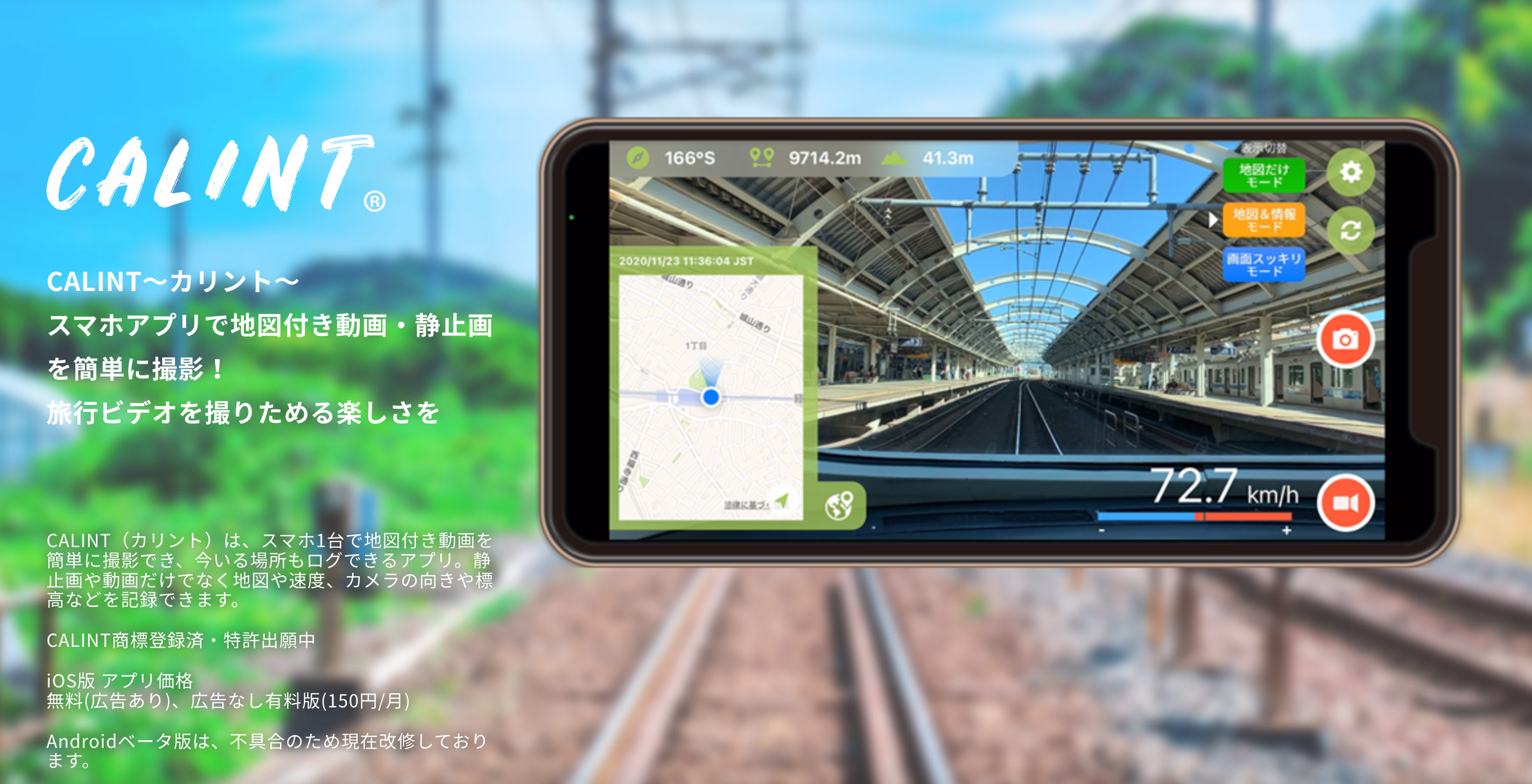 このアプリでは、動画撮影時に位置情報(GPS)と完全リンクしたGPS情報が取得できるため、カメラと移動情報を同時撮影(記録)できます。CALINTは、既存のアプリではできなかった、移動記録を楽しいものへ提案するアプリとして開発されました。