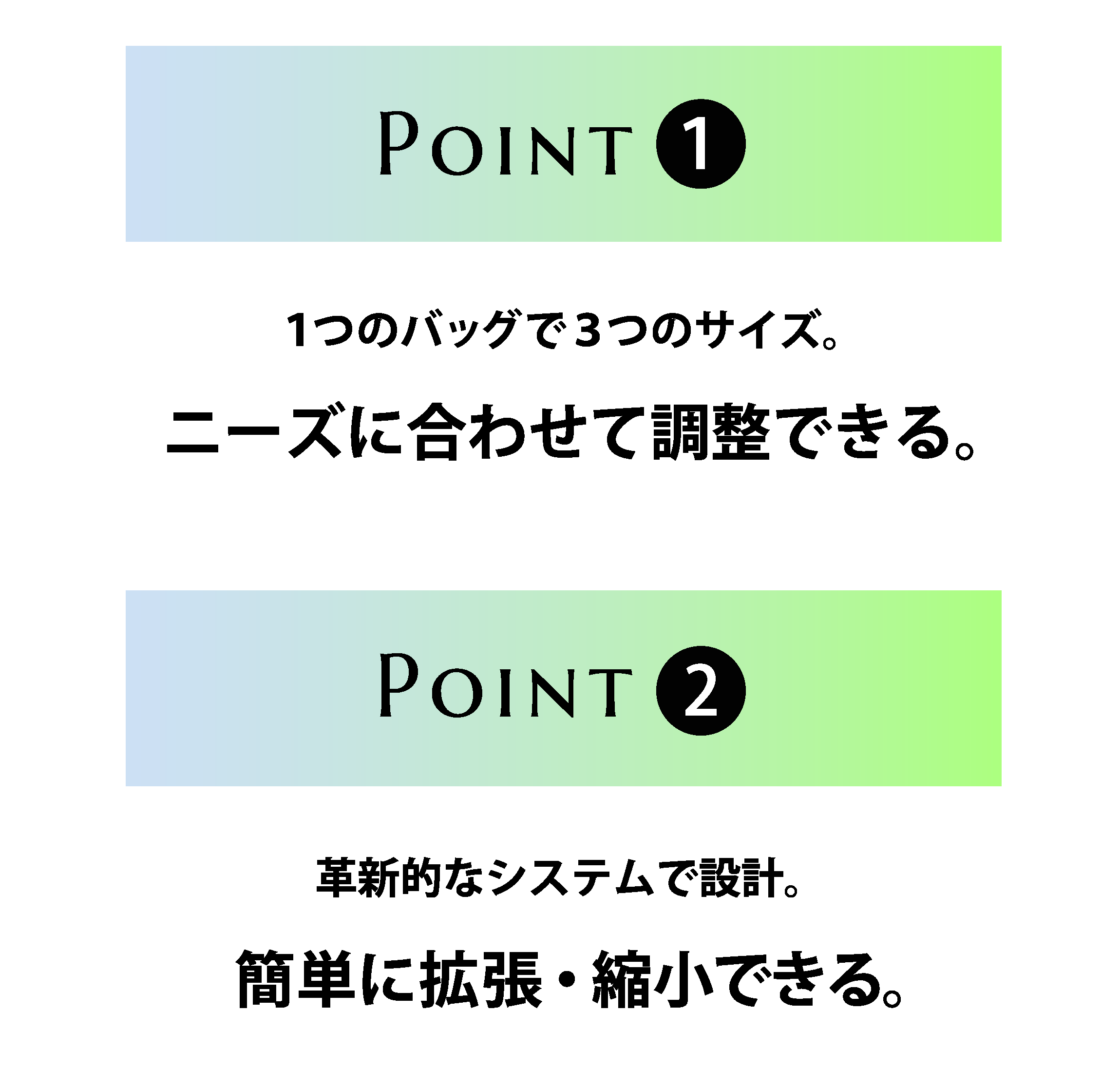 もうバッグ選びに悩むことはありません! スマート&シンプルなバッグライフ。