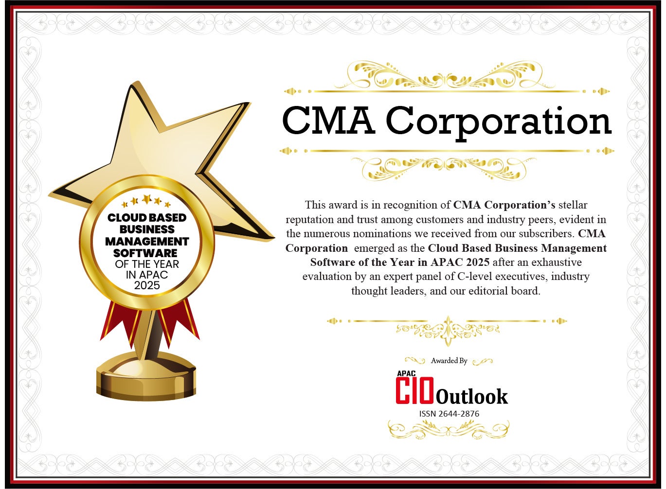 CMA株式会社が『APAC CIO Outlook』の『CLOUD BASED BUSINESS MANAGEMENT SOFTWARE OF THE YEAR 2025』に選出されました。