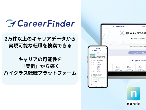 ②「CareerFinder」: 2万件以上の経歴情報を蓄積したキャリアデータから実現可能な転職を検索できる、求職者のキャリアの可能性を「実例」から導くハイクラス転職プラットフォーム