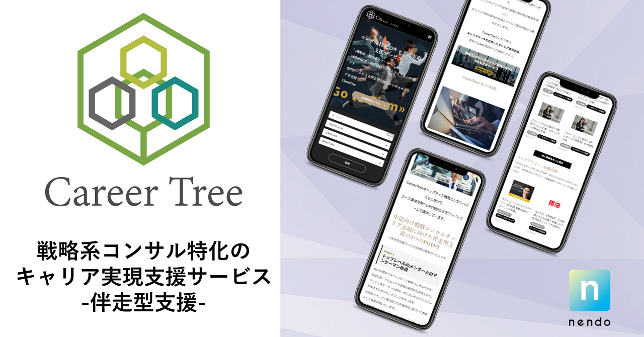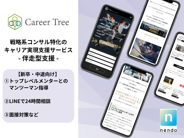 ①「CareerTree」: 戦略コンサルティングファームへのキャリアを実現するためのケース面接対策などのメンタリングサービスと、就職/転職/副業支援サービス