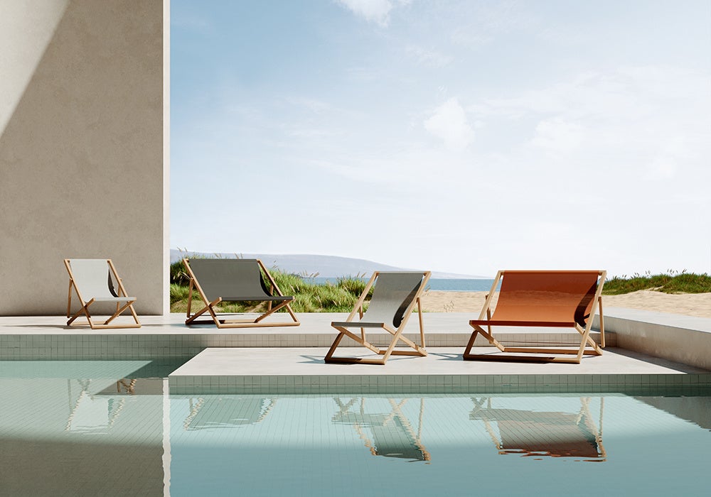 全てmade in SPAINで生産される高品質なアウトドアファニチャーブランド。シンプルなリクライニングチェアー「Gandula」を展示します。
