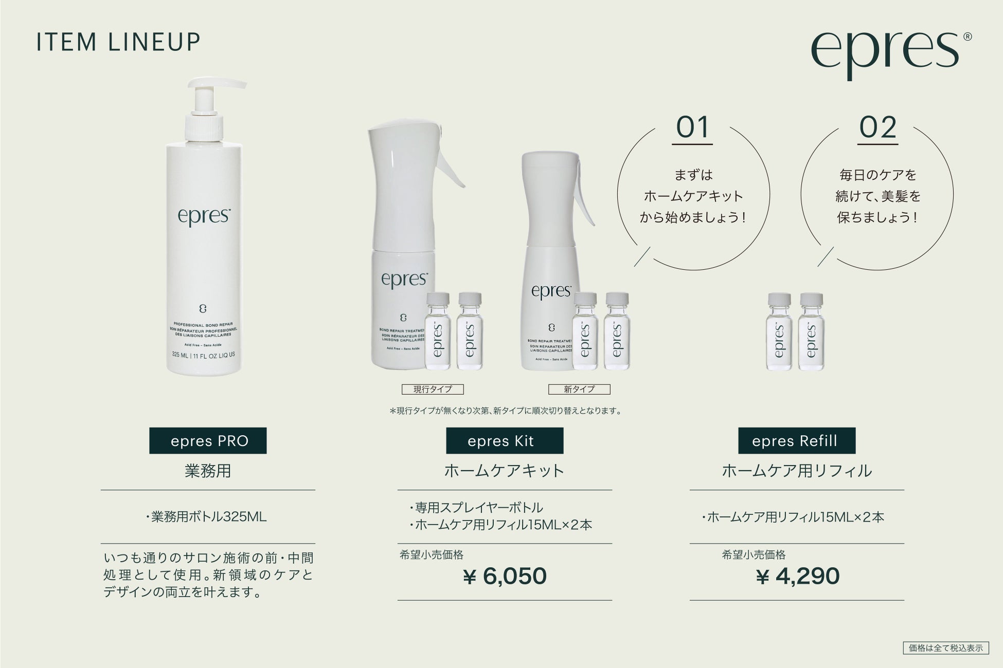 次世代型のボンディング効果でダメージ毛やエイジング毛をケアし、新領域のヘアケアとデザインの両立を叶える「エプレ」が日本初上陸。あらゆるサロンメニューとの組み合わせが可能なため、ヘアデザインの幅を広げ、サロンでのパフォーマンス向上に繋がります。