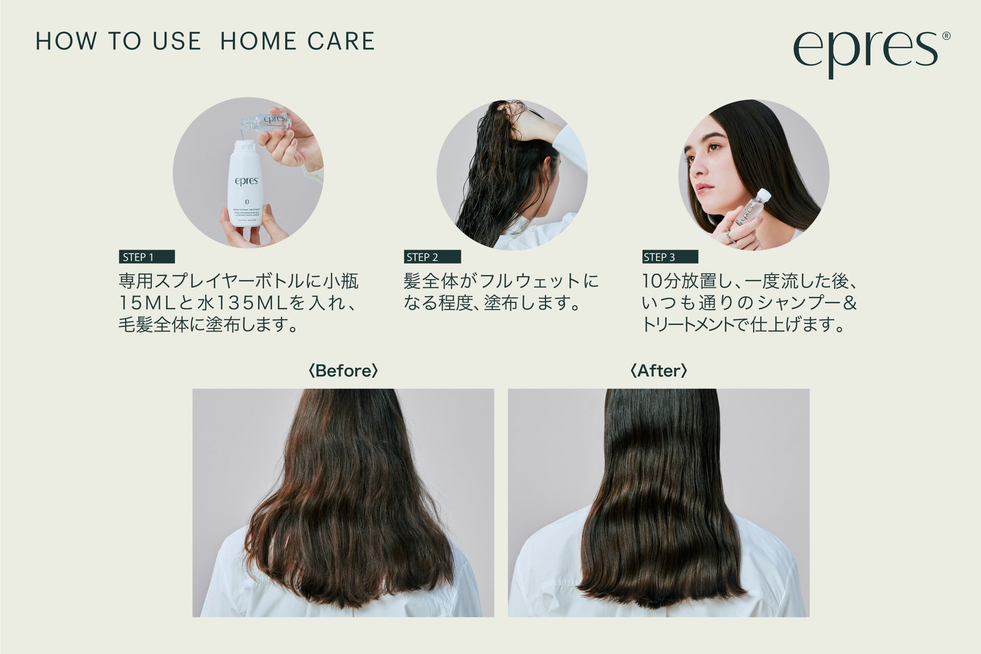 エプレを使用することでこれまでのカラーやパーマ施術のクオリティが格段にアップし、ハイダメージ毛・エイジング毛・複雑な履歴毛の方も、希望する施術の幅を広げられます。また、サロンでの最高のヘアケア体験をしたあとは、ホームケアキットで毎日補修力が高まる、美髪(貯金)ルーティンをしましょう。自宅でのエプレケアを続けることで、次回サロン来店時にはさらなる美しさへの喜びを感じられるはずです。