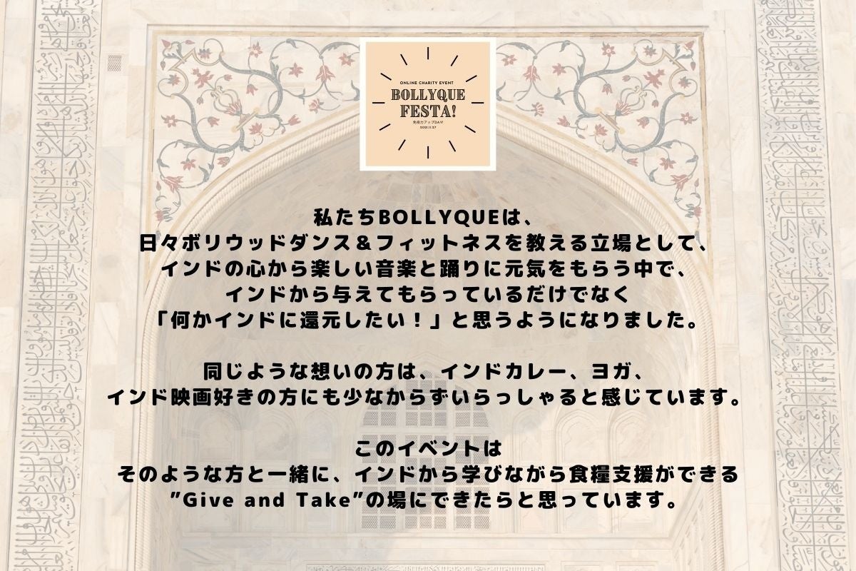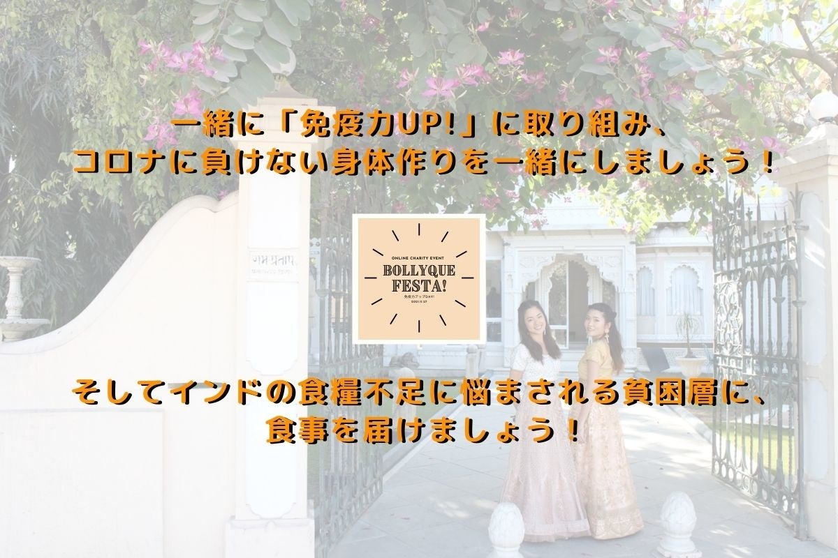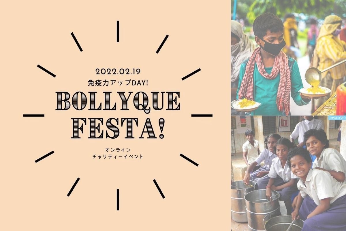 オンラインで行うボリウッドフィットネス「BOLLYQUE」(所在地東京都世田谷、代表 坂本千晴、以下「BOLLYQUE」)は、クラウドファンディングサービス「キャンプファイヤー」にて、2022年2月19日(土)にチャリティーイベント「BOLLYQUE FESTA !」を開催します。「免疫力アップ!」をテーマにヨガ、アーユルヴェーダ、インドカレー料理教室、ボリウッドフィットネスなどのレッスンをオンラインで体験できます。収益の一部はインドで貧困層への食糧支援を行う、“世界最大の給食センター”「アクシャヤ・パトラ」の活動に充てます。