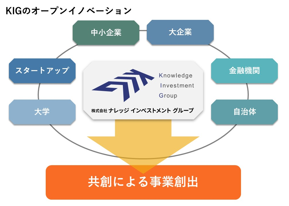 KIGは、オープンイノベーションによる中小企業、大企業、スタートアップ、自治体、大学等の連携による新規事業の創出を支援しています。