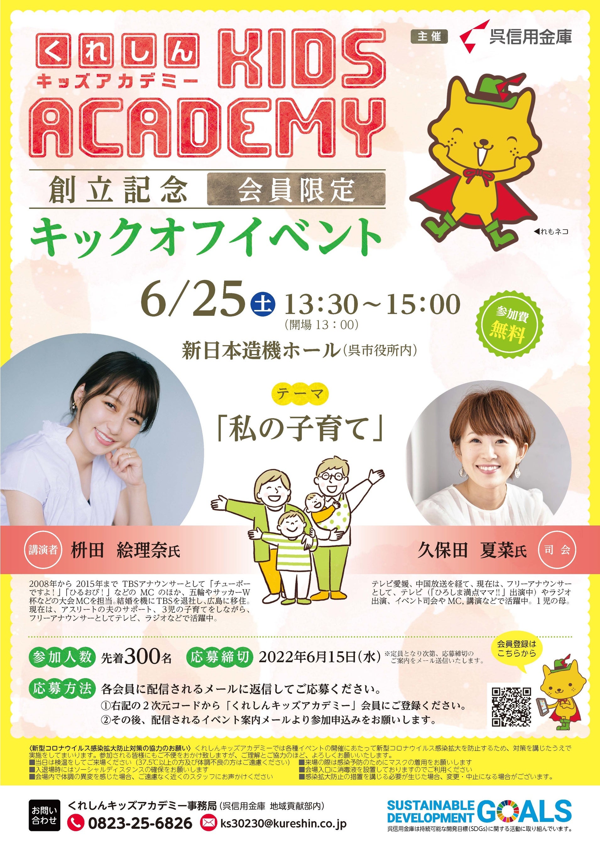 応募方法:下記URLより「くれしんキッズアカデミー」にご登録いただいた会員さま限定で配信される参加申込メールよりお申込みください。