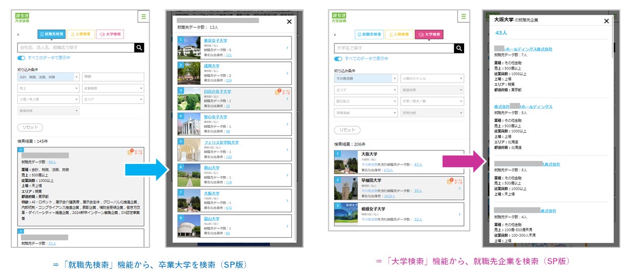 現在、就職先検索機能では516校の検索が可能(オープンデータ305校を含む)となっております。次年度にはもっと多くの大学様からご回答頂くべく情報の収集を進行中で、検索可能な企業や大学数は順次アップデートしていく予定です。