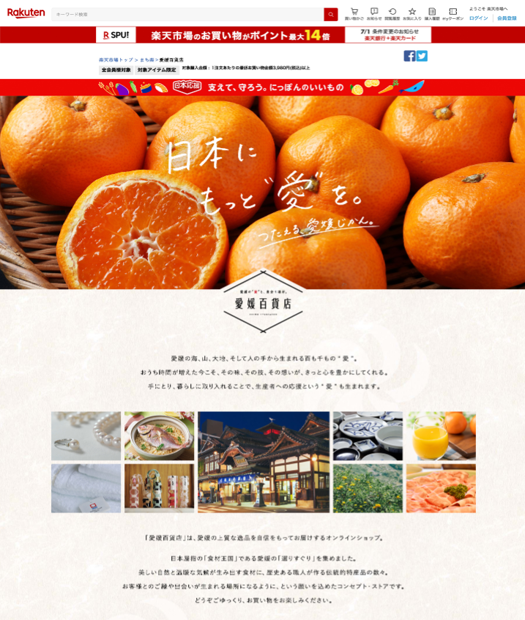 ・楽天市場内特設サイト「日本のよいもの市×愛媛百貨店」開設、キャンペーン⇒6月(済)、9月、12~1月予定、3月予定